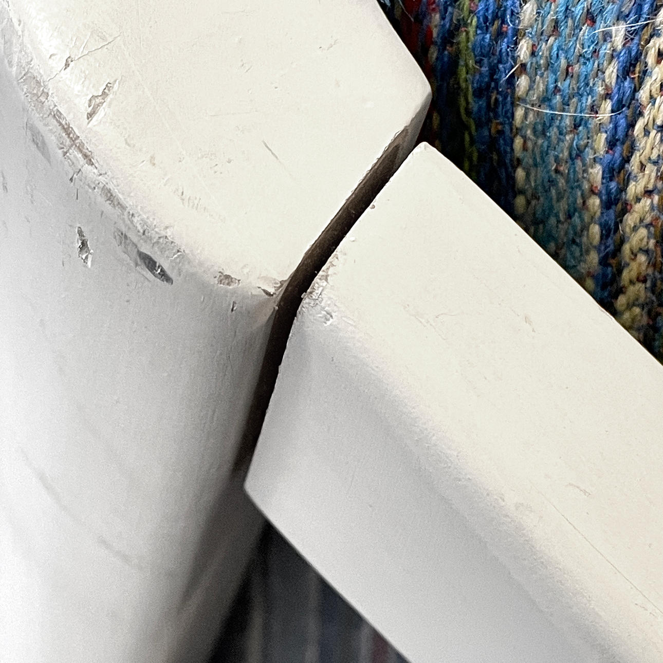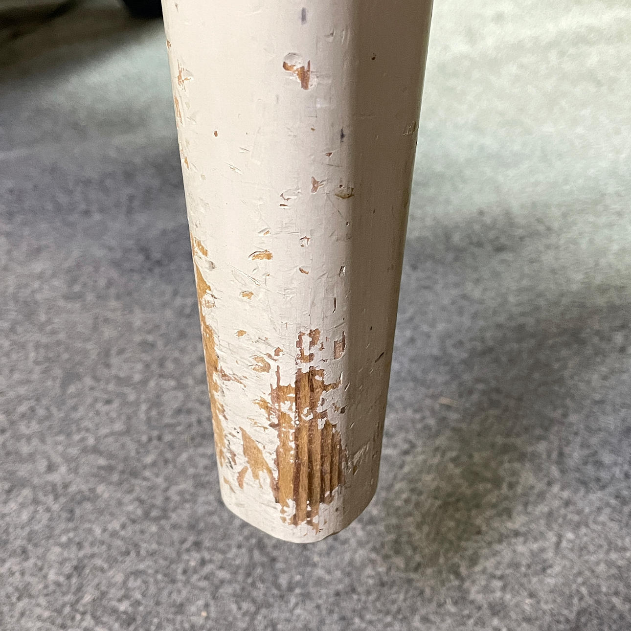 Normal wear and tear, color loss, chafing, any minor stain may occur. One leg has been glued on.