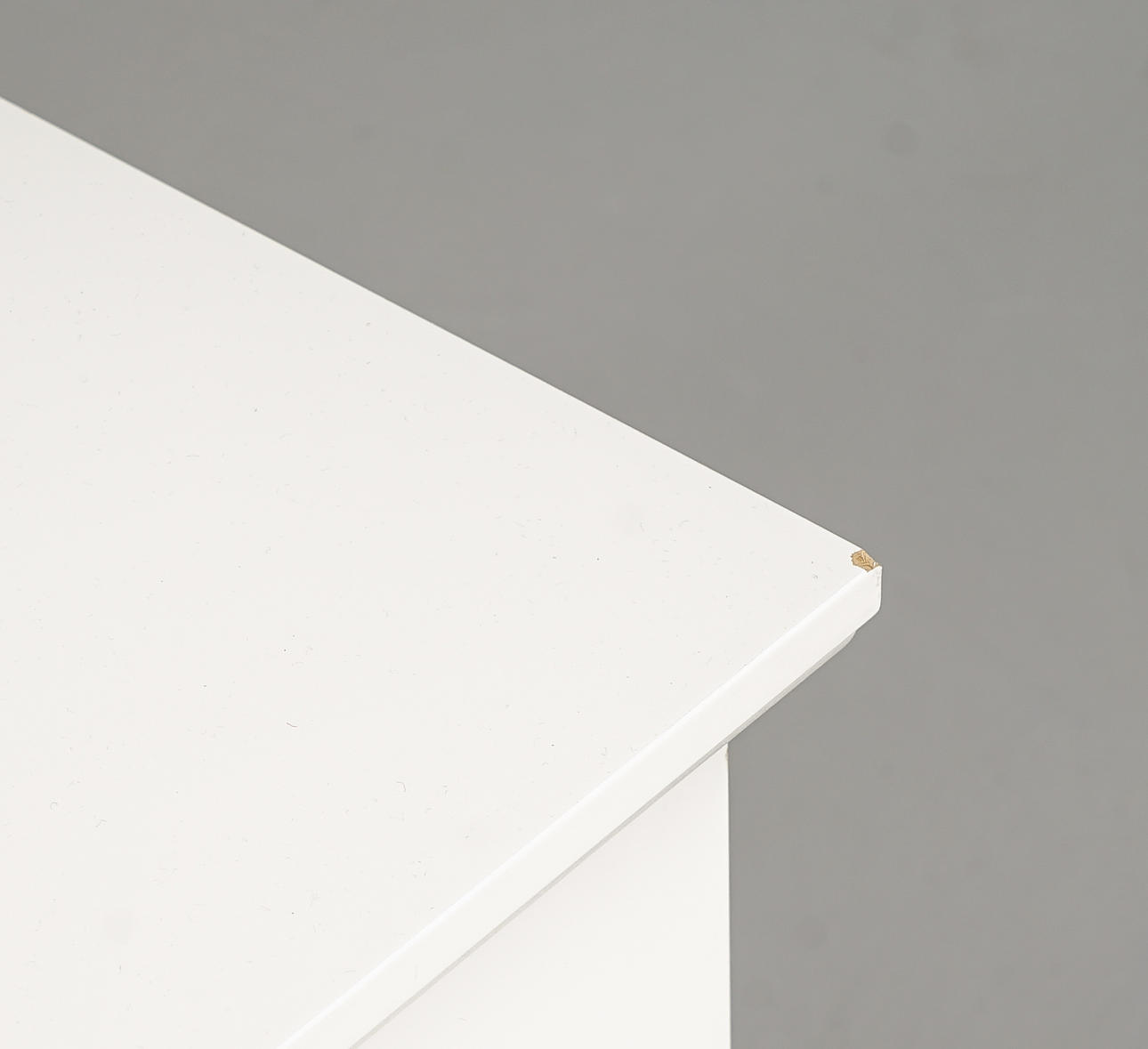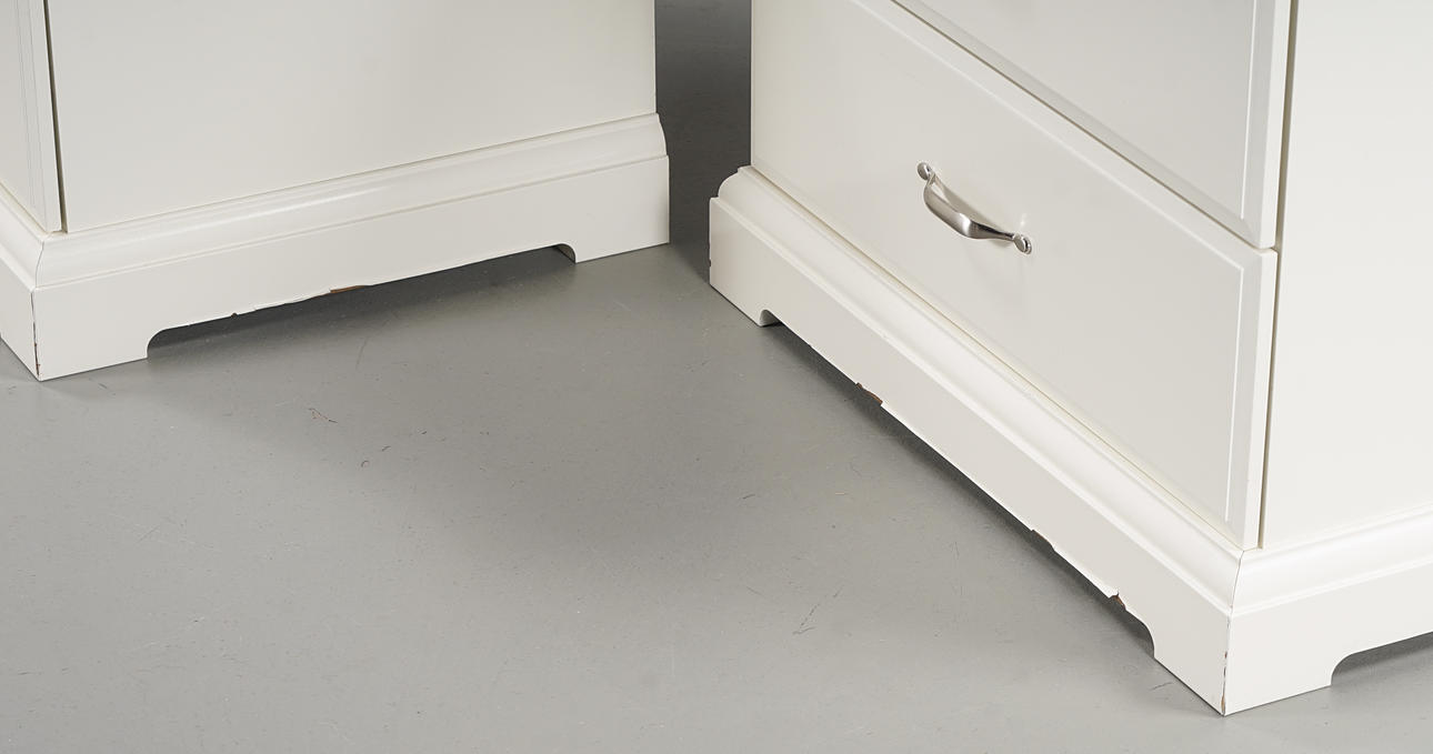 Normal wear and tear, scuff marks, dropped laminate at the bottom edge.