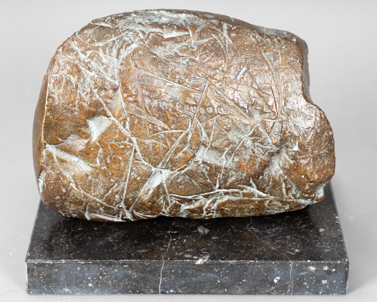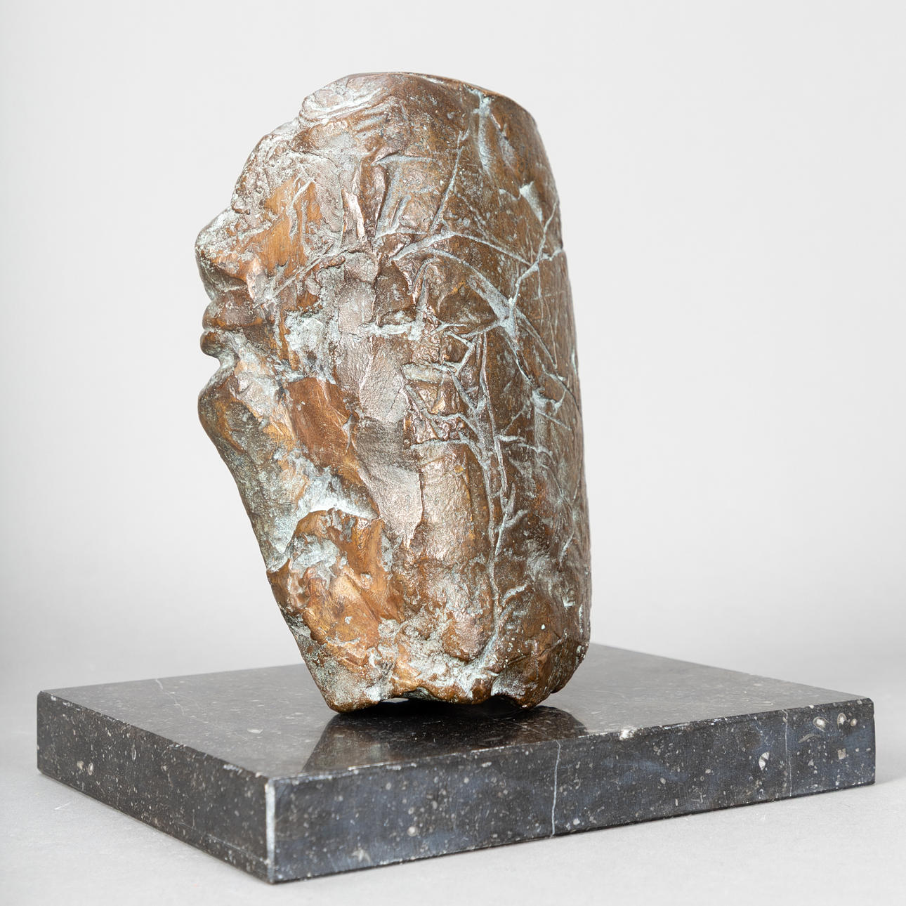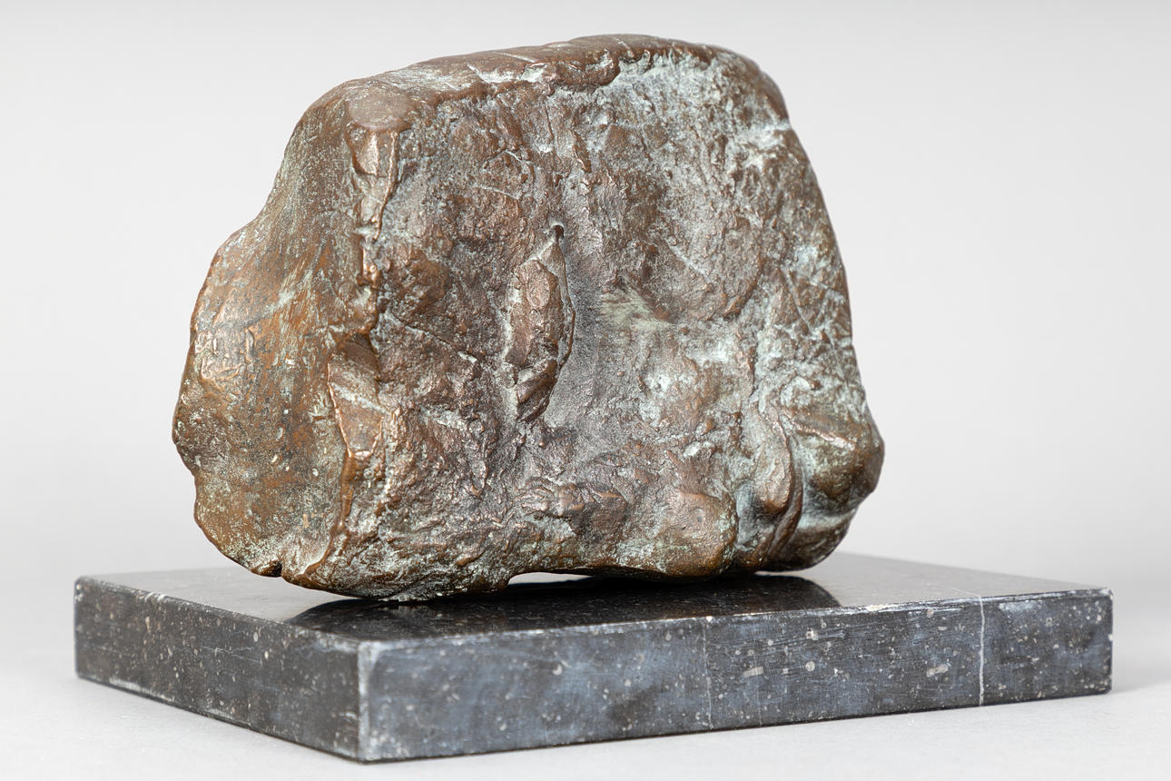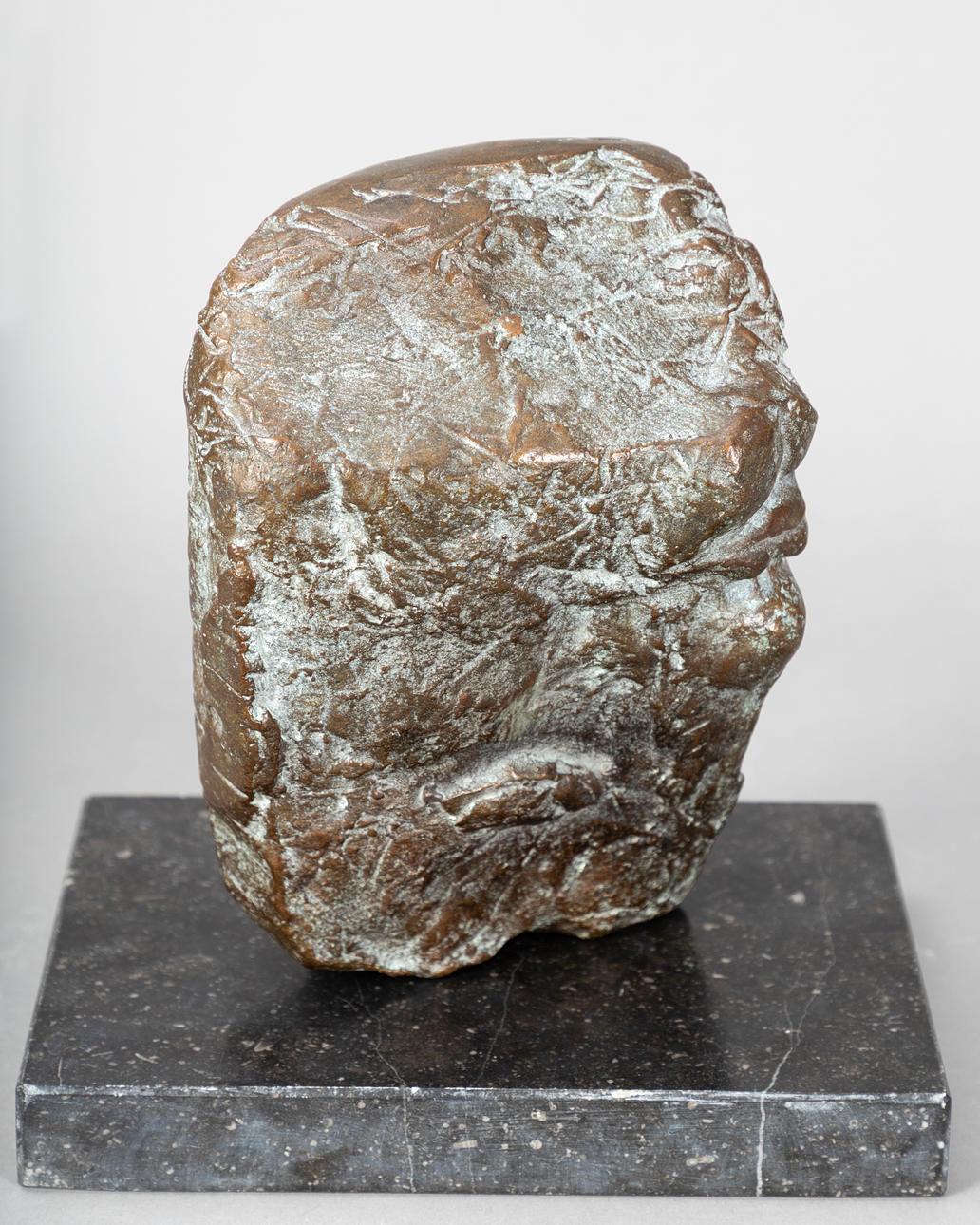 Brigitte Wawö (1939-2025), reclining head, bronze on granite base, ca. H 14 x W 23 x D 16 cm, with base approx. H 18 x W 25 x D 20 cm
