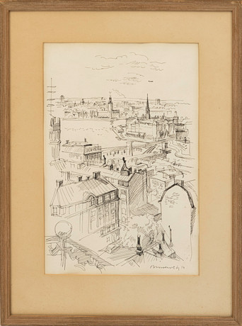 BJÖRN LINDROTH. Embrace, ink, signed and dated -53.