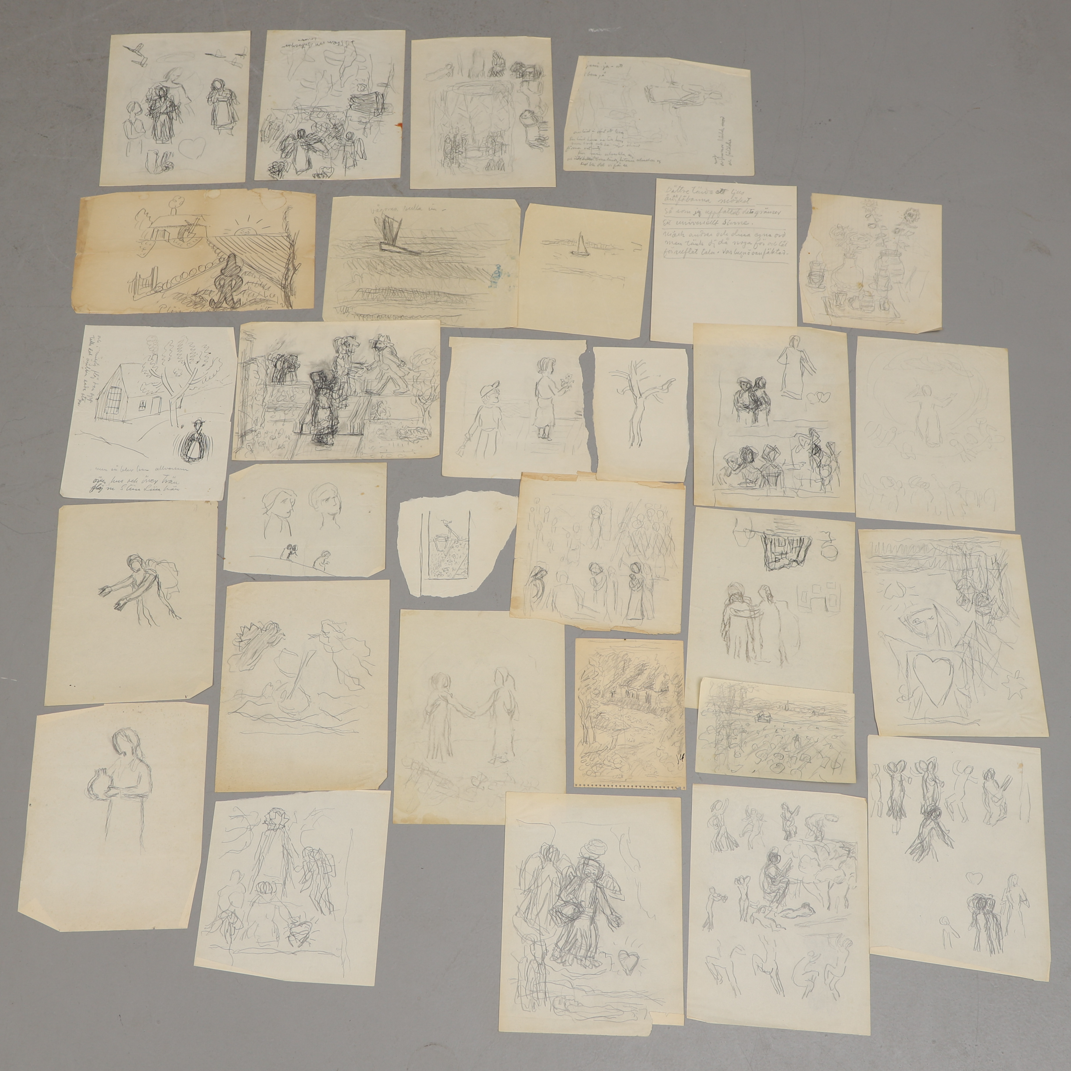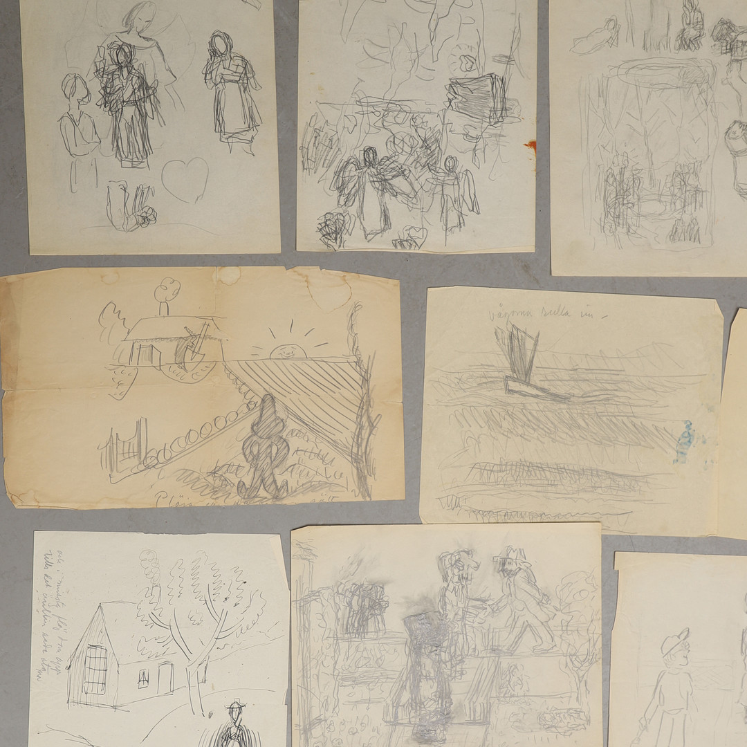 4297125. CARL KYLBERG. Drawings, sketches, texts etc., approx. 30 pcs.