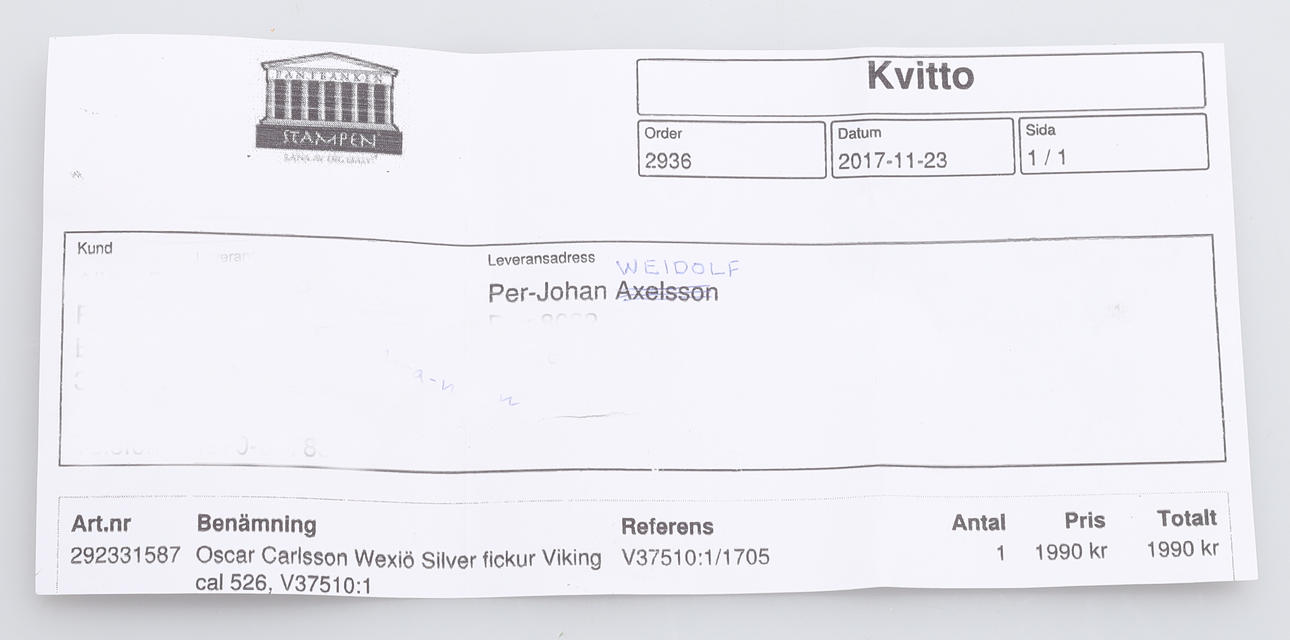 4297244. POCKET WATCH, silver, Oscar Carlsson, Wexiö.