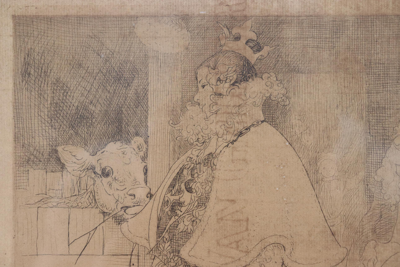 CARL LARSSON. etching, “Lisbeth and the Calf”.