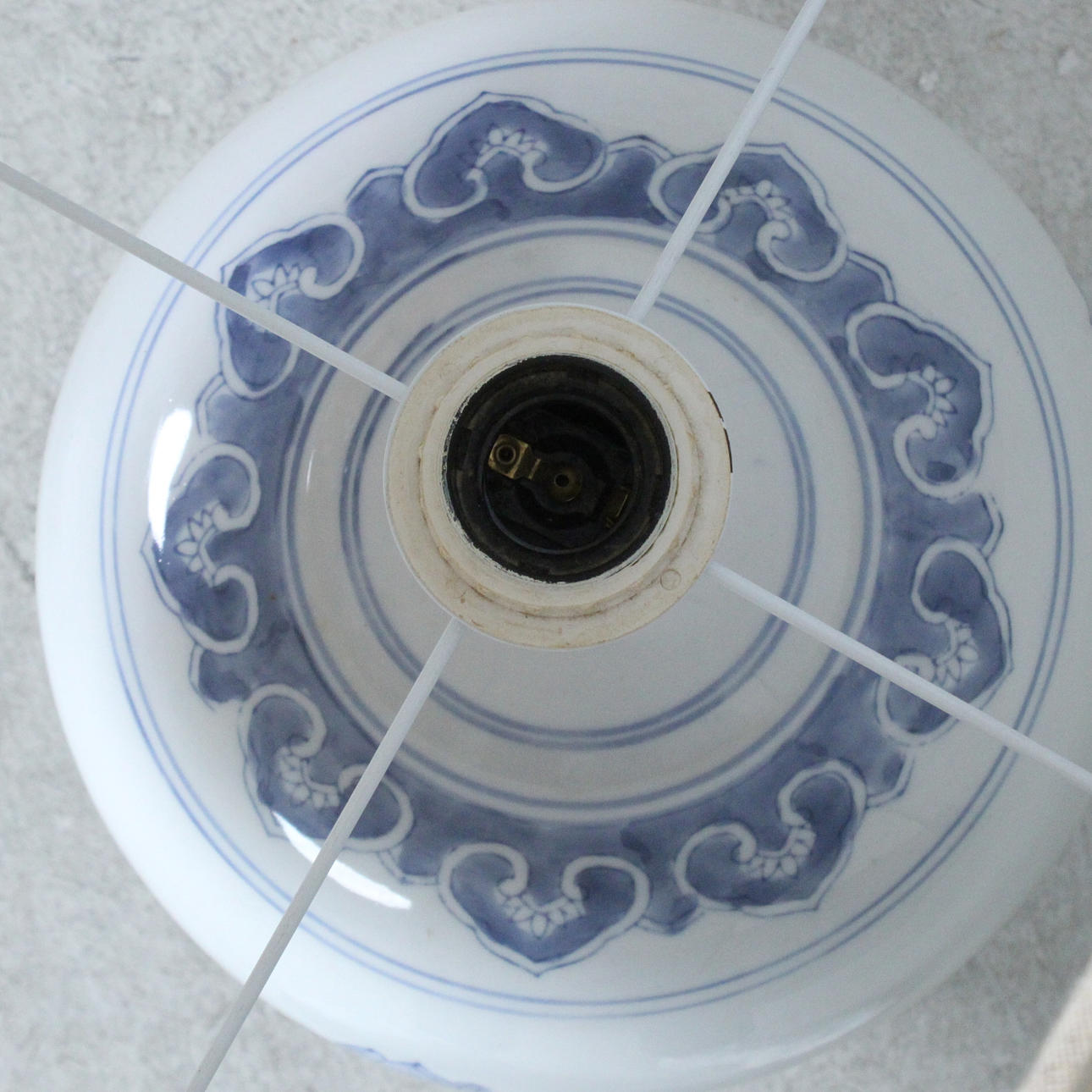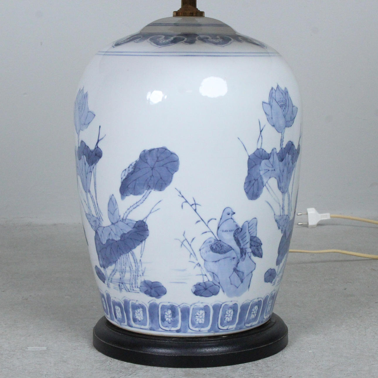 table lamp, porcelain lamp base, China, equipped with a burner, Dimensions approx.: h 64 cm, w 35 cm, depth 35 cm.