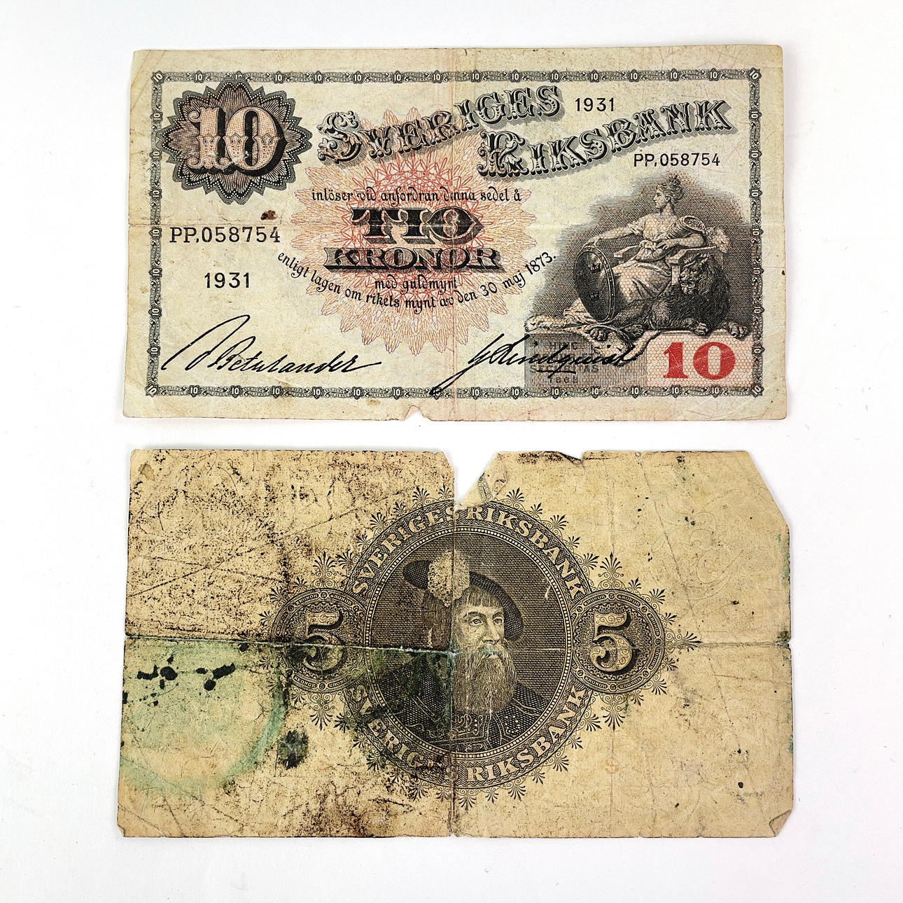 4 pcs 10 kronor, 1931, 1956, 1968, 1984 (a 10 kr 1938 torn apart included)