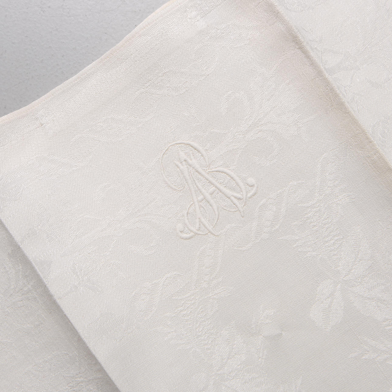 With monogram in white thread (AB). Appearing clean and freshly mangled, single blemishes or damage may occur that was not detected during inspection.