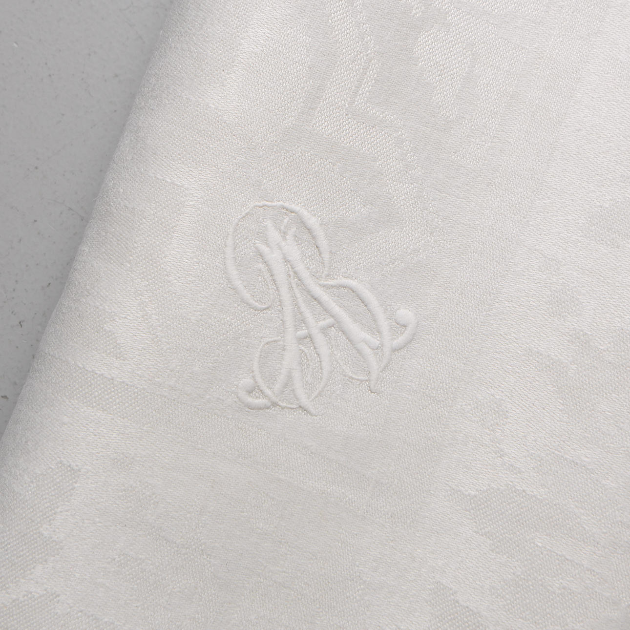 Monogram in white thread (AB).