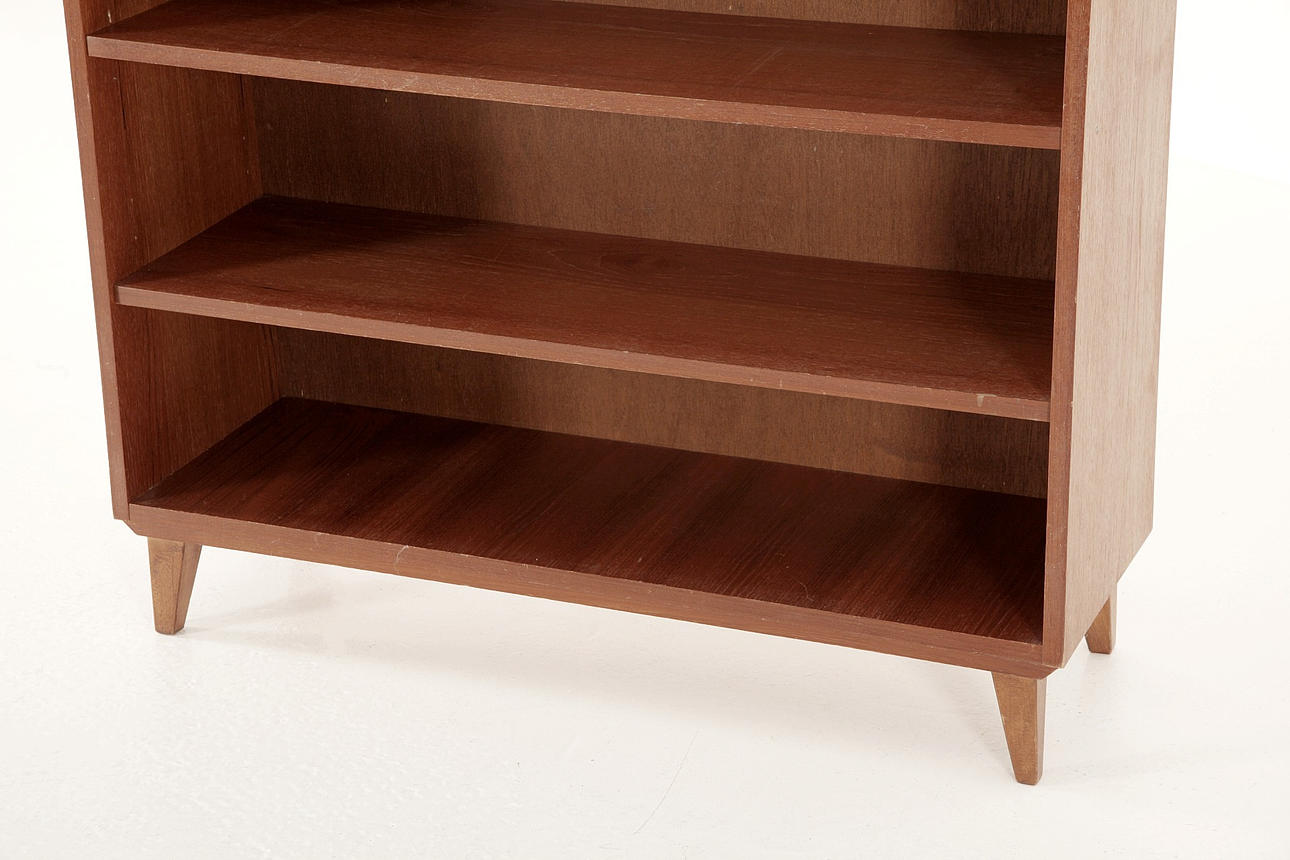 Bookcase, teak, removable shelves, tapered model.