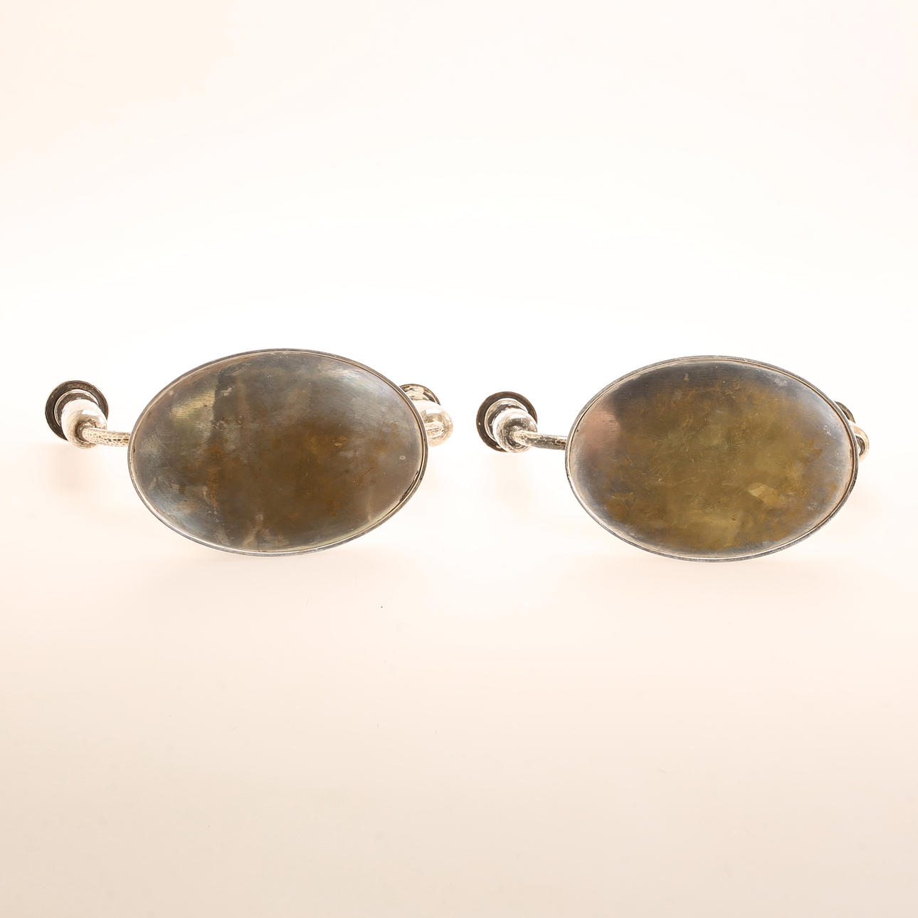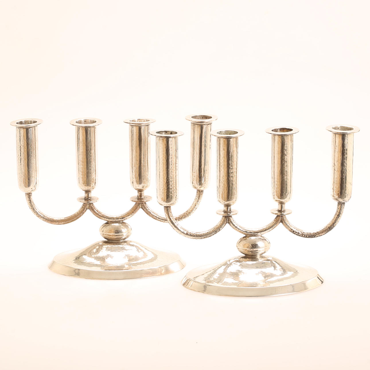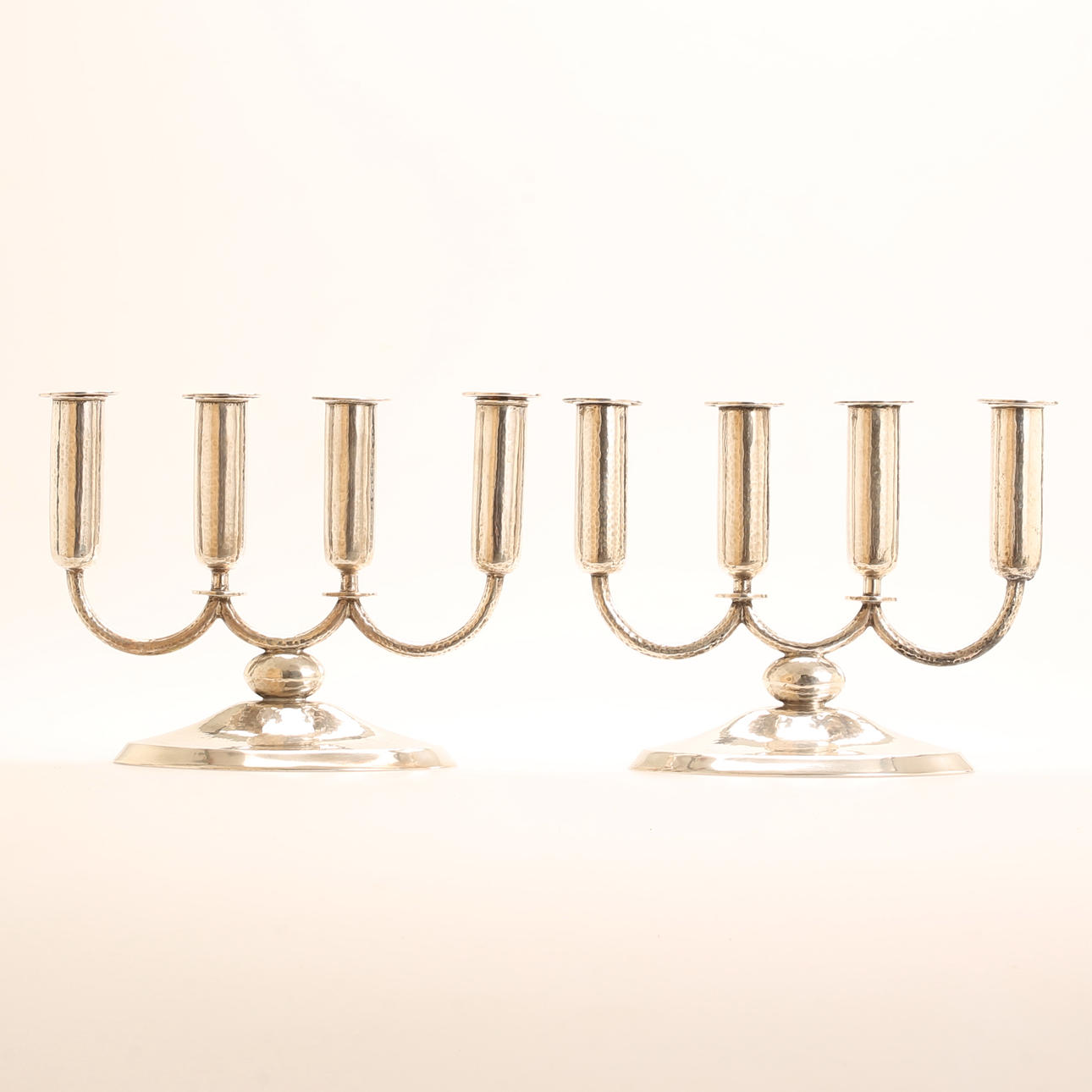 A pair of silver candlesticks.