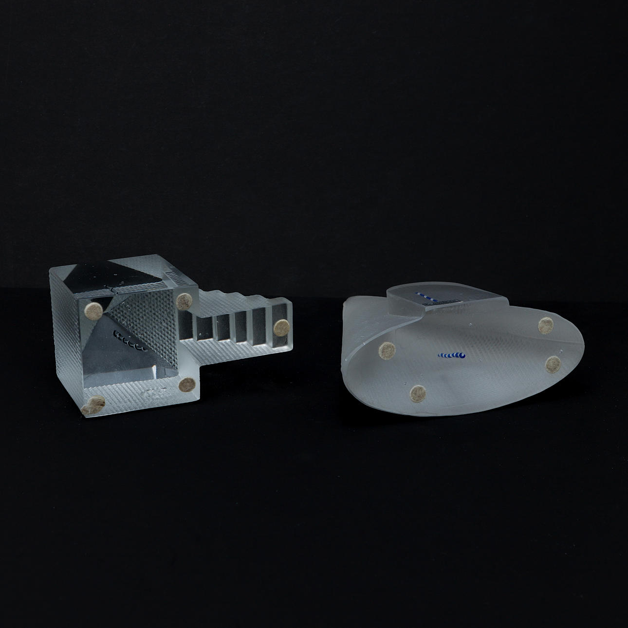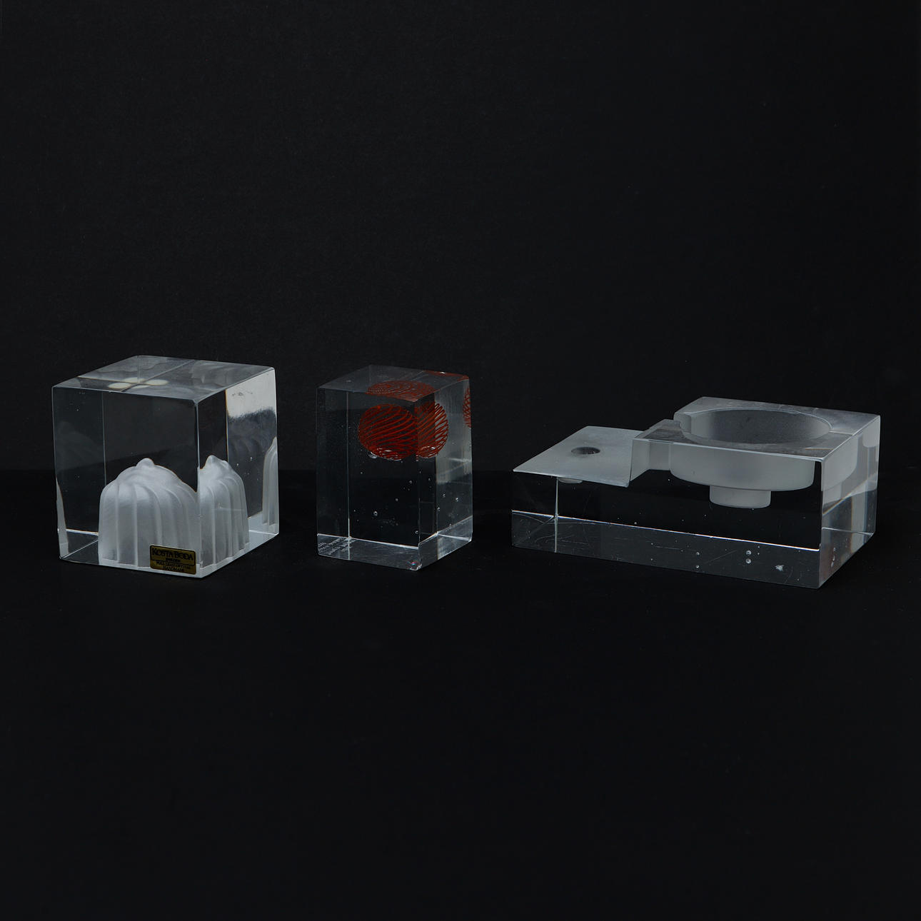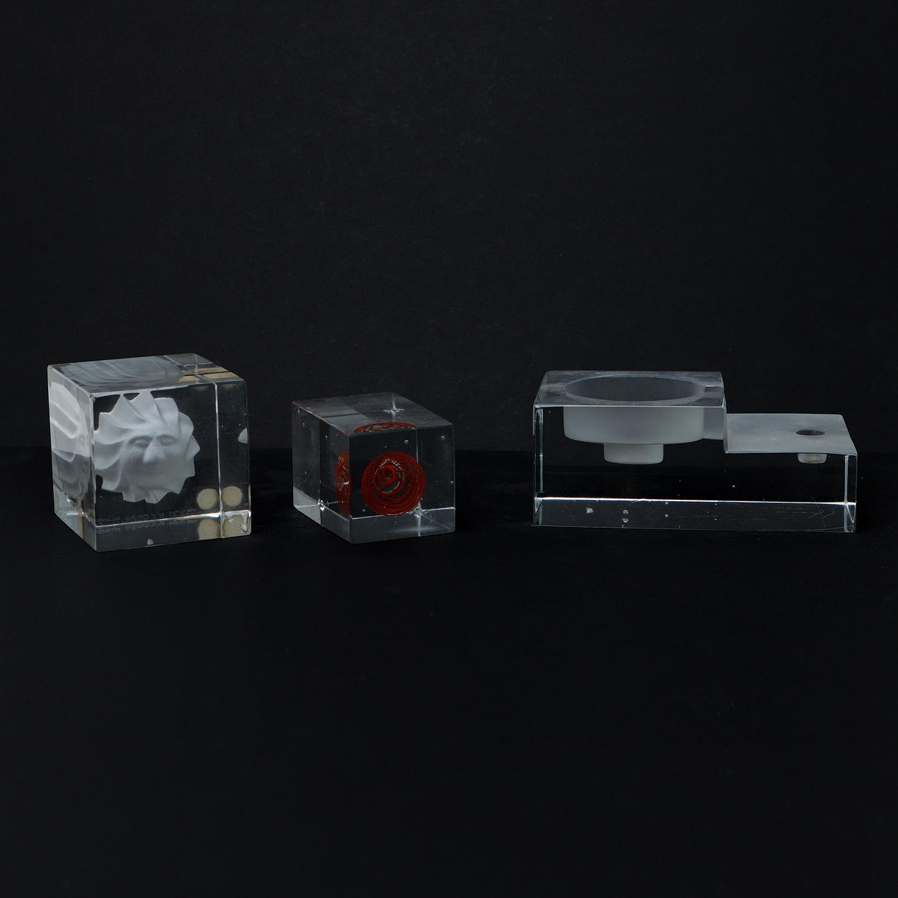 Glass blocks with different decors. 6 - 13 cm, height 5 - 16 cm.