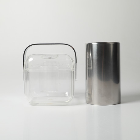 Brushed steel. Height 43 cm, diameter 28 cm.