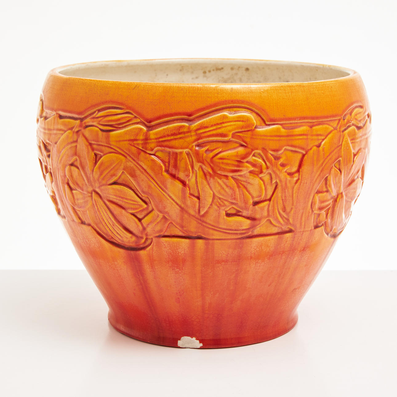 4301528. ALF WALLANDER. outer lining, flintware, Art Nouveau, Rörstrand, glazed in orange, monogram signed AW in the goods and marked Rörstrand, decoration partly in relief.