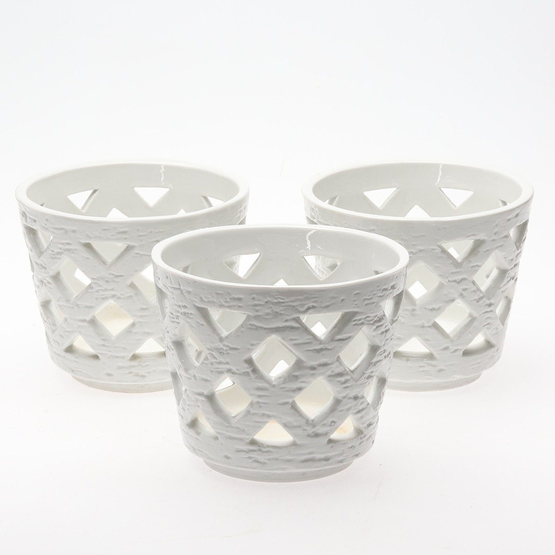 4301650. GUNNAR NYLUND. OUTER LINING. Three stoneware “Grid pot”, Rörstrand, 20th century.