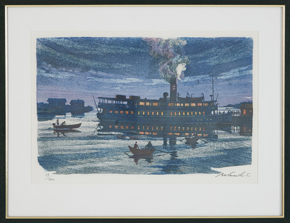 4301706. EINAR ROSÉN. “BLÄSINGE HAMN ÖLAND” LITHOGRAPH IN COLOURS, SIGNED, NUMBERED 5/360, GLAZED.