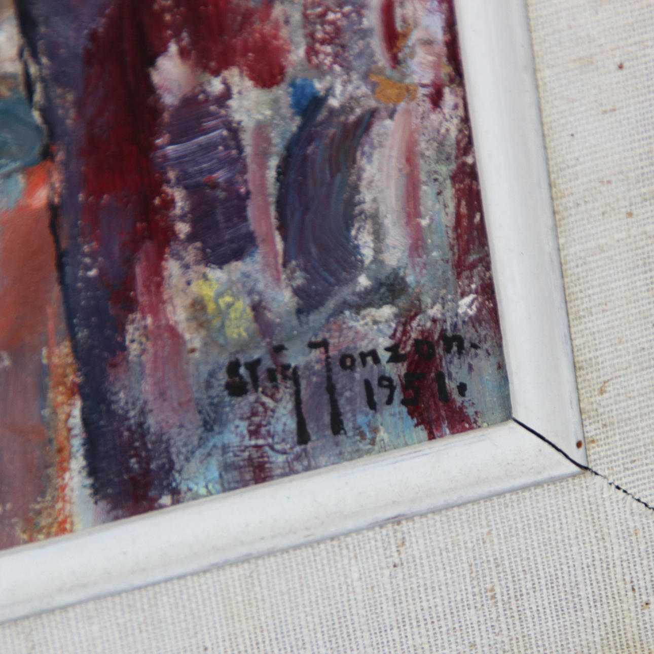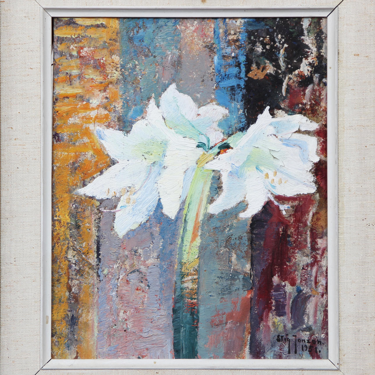 STIG JONZON. “AMARYLLIS” OIL ON PANEL, SIGNED, DATED 1951.