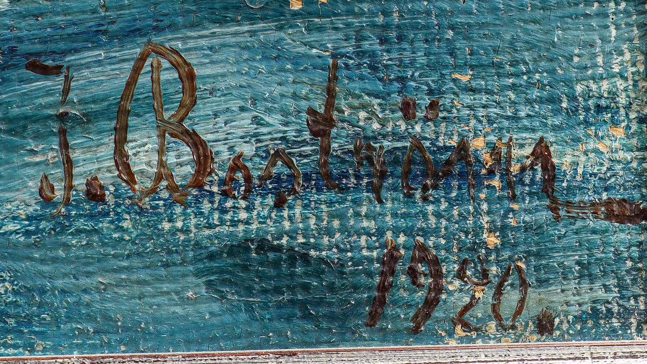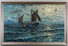 Dated and signed. Motif with fishing boats.