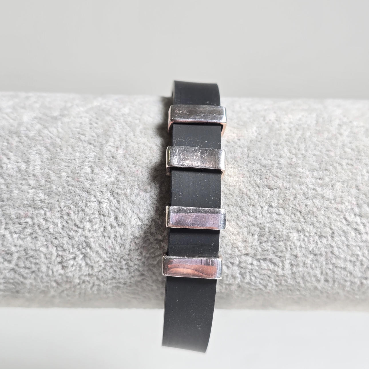 RUBBER AND SILVER METAL BRACELET.