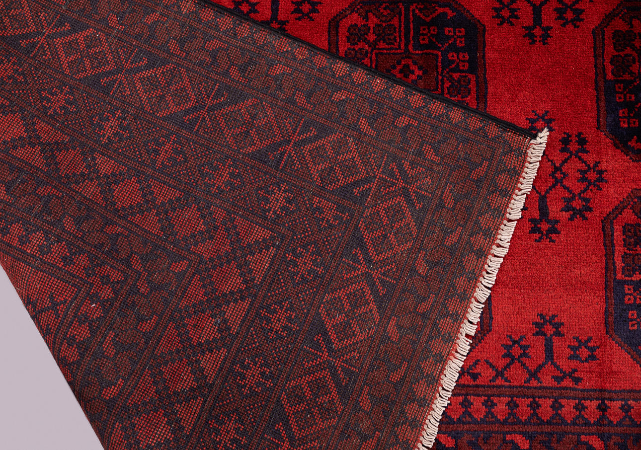 Main field with red base color and decor of afghanistan octagons.