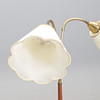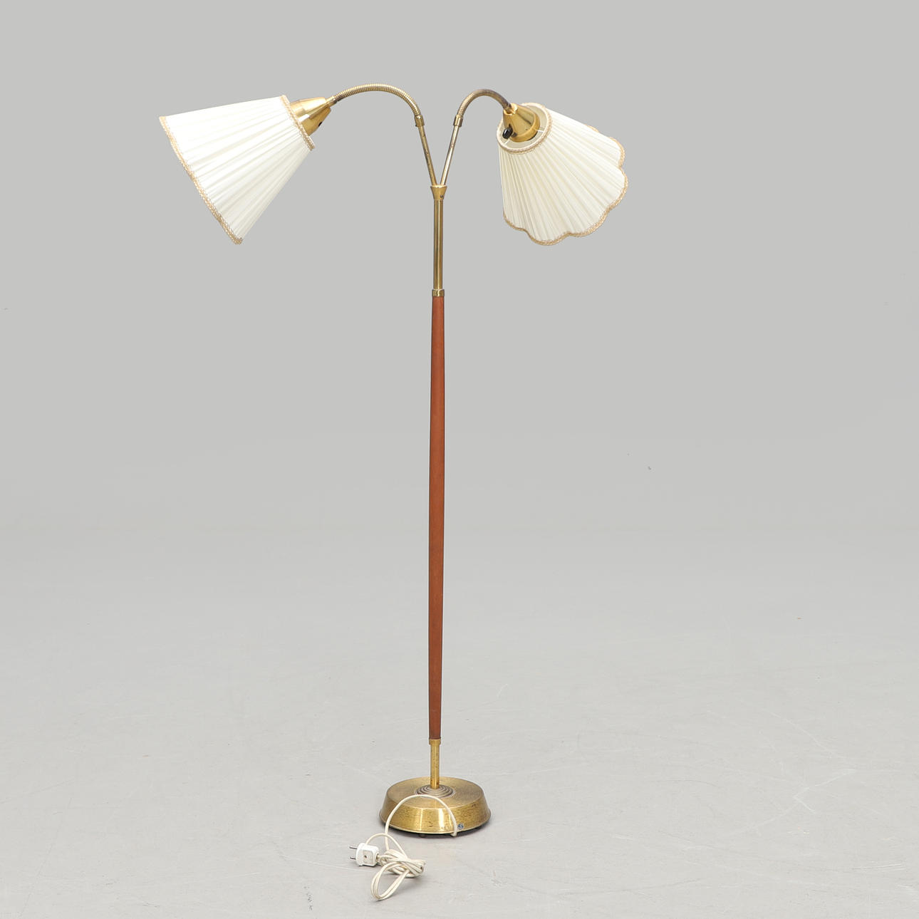 Brass and teak. Two adjustable arms. Height approx. 130 cm.
