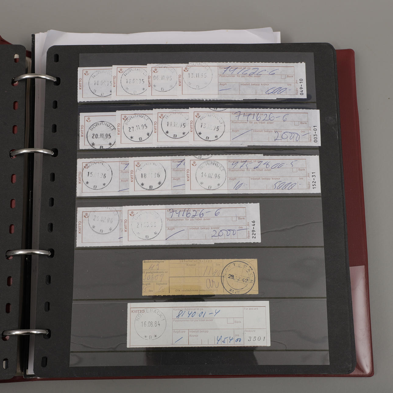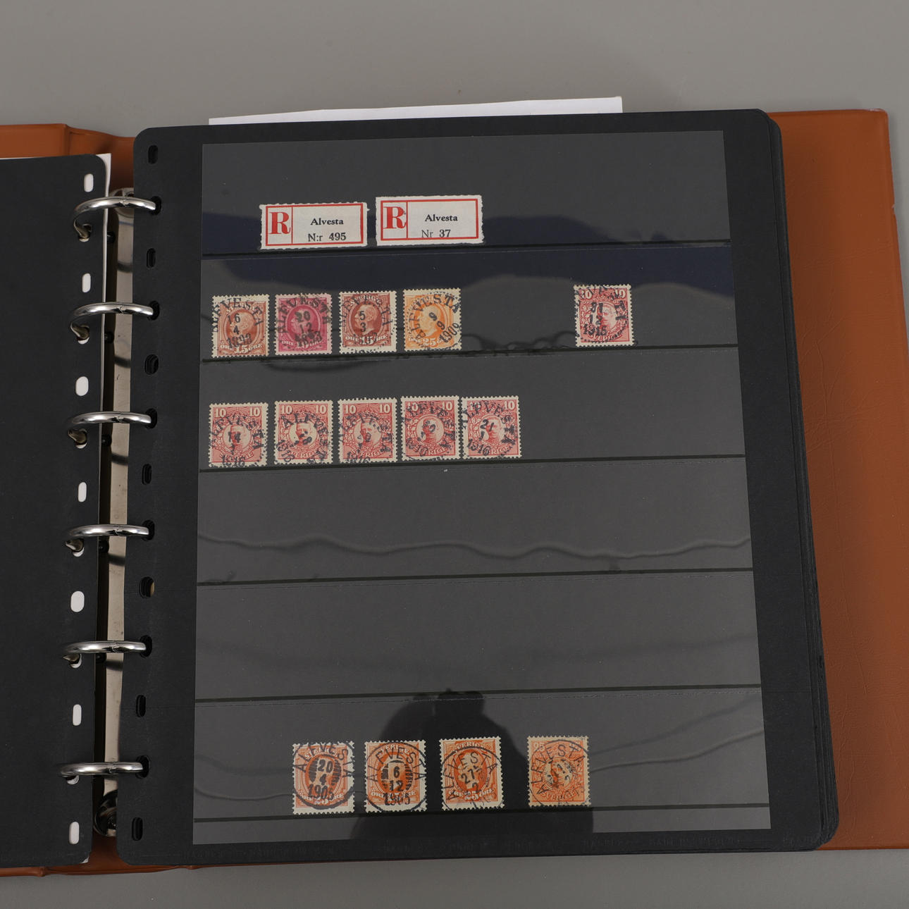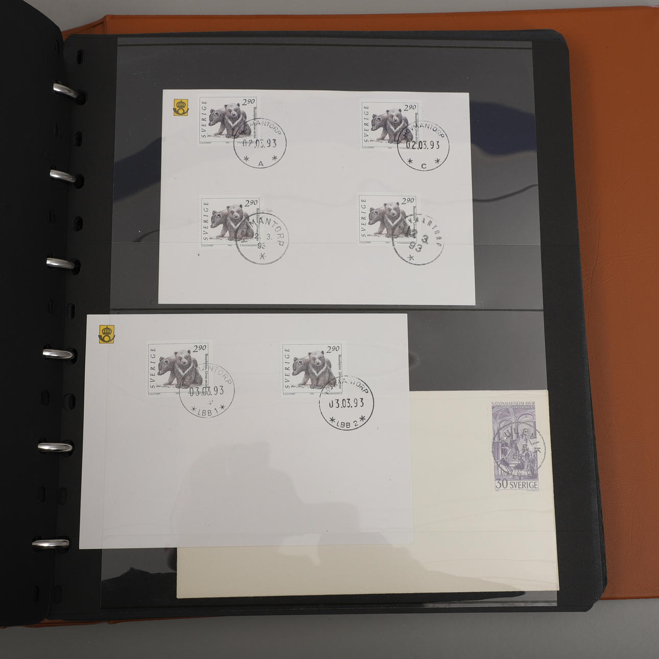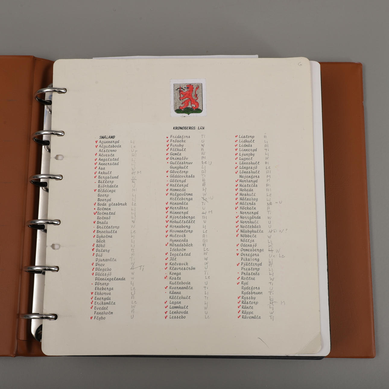 Two binders with insert sheets filled with stamps and the talon with Småland postage stamps from A-Ö.