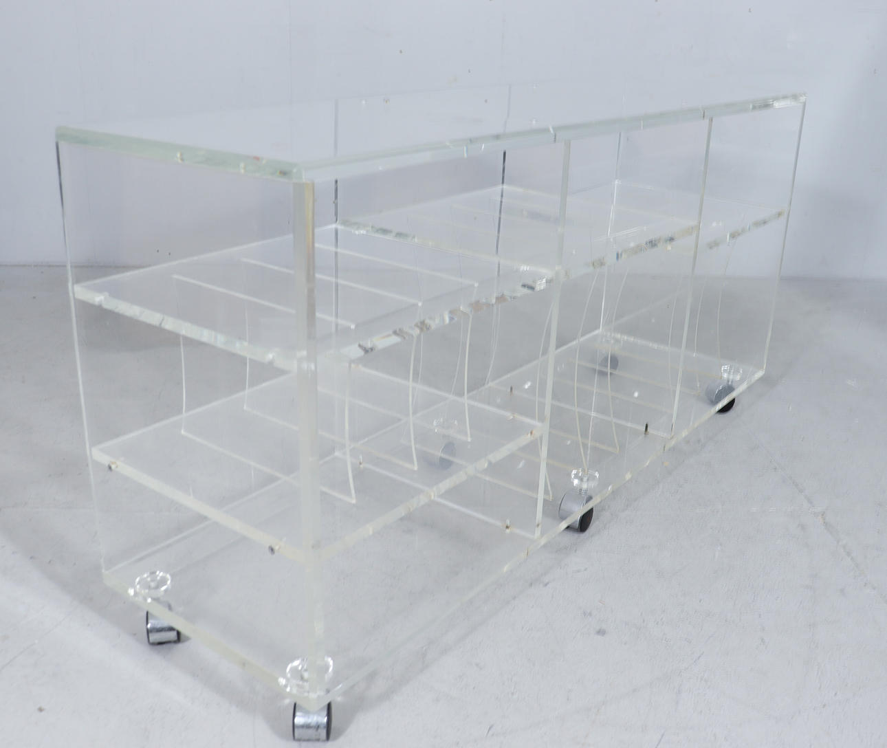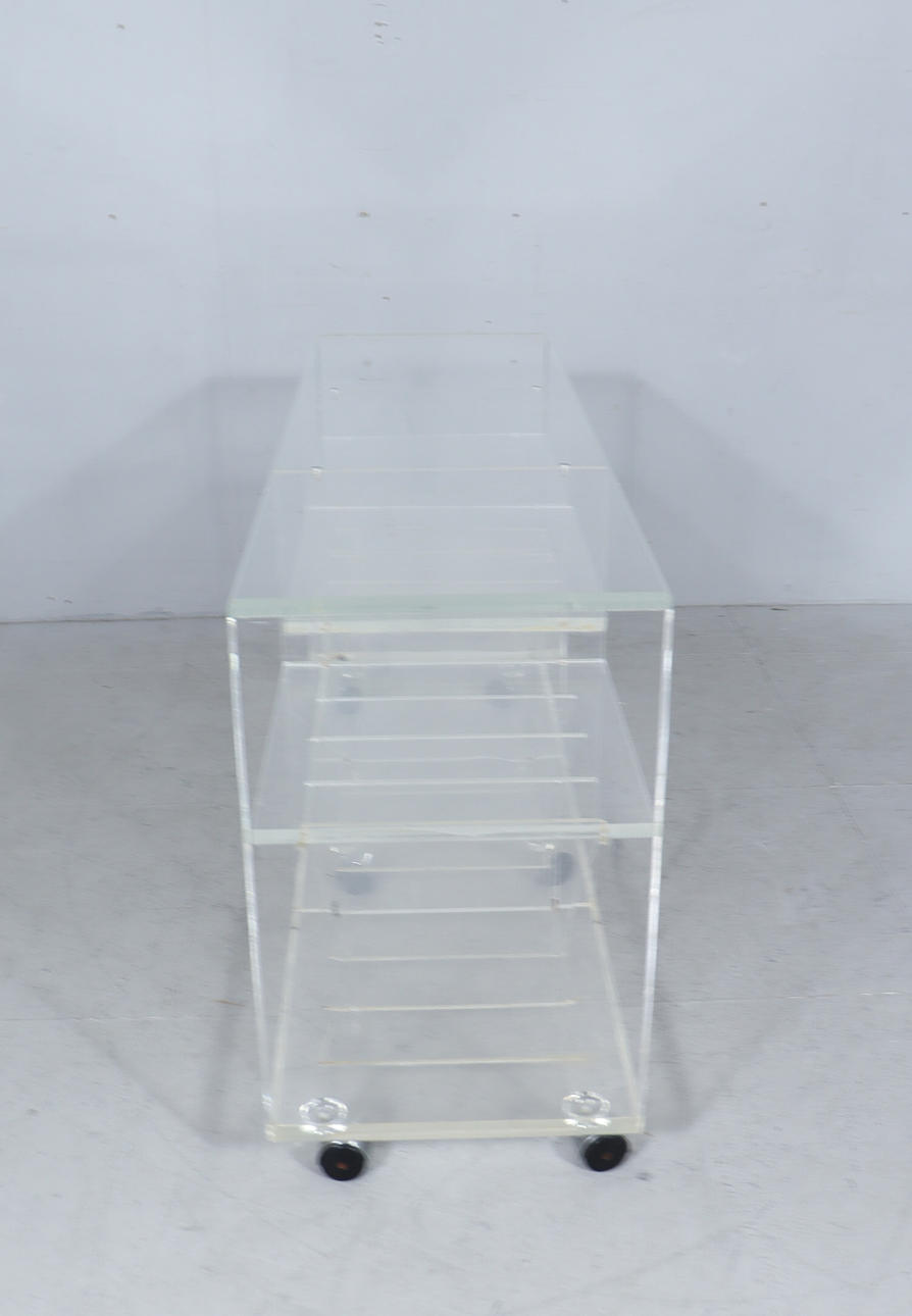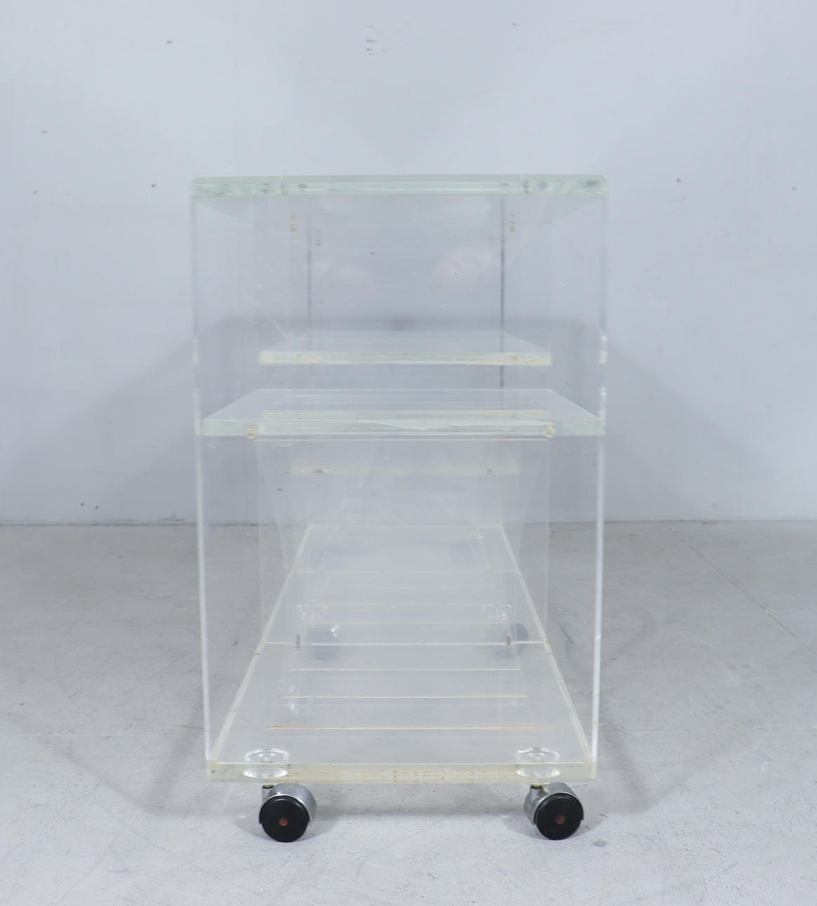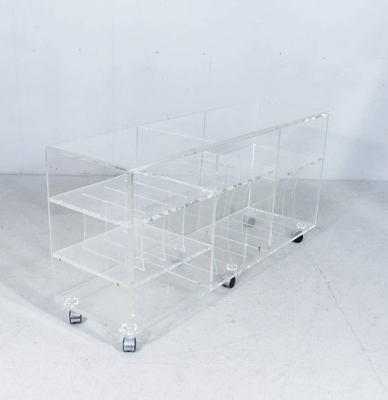 4303921. Mid Century plexiglass shelf/sideboard, rollable, Germany, 1970s.