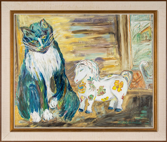 OIDENTIFIERAD KONSTNÄR. OIL, on canvas, sheep motif, signed.