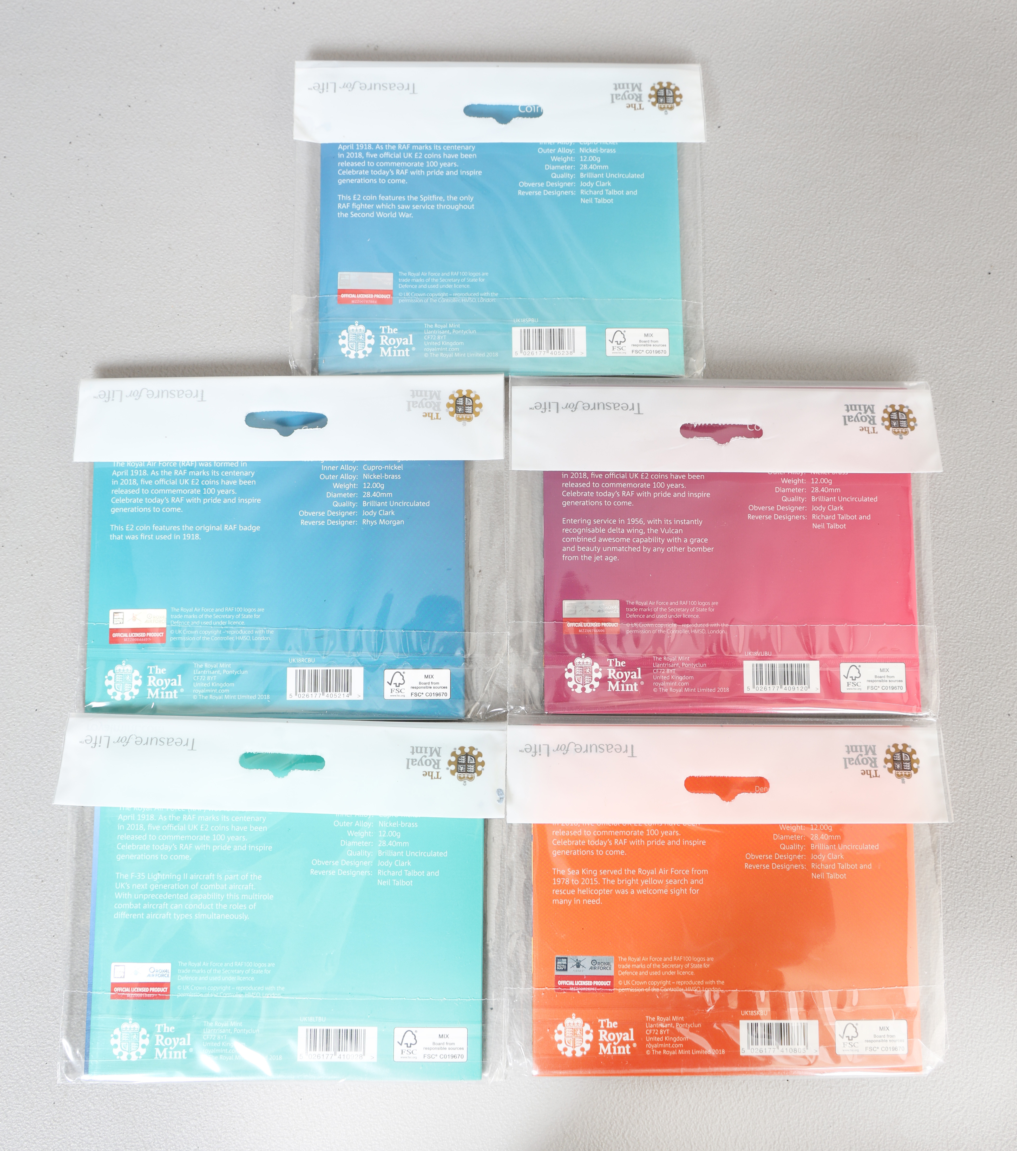 4304880. FIVE 2018 ROYAL MINT RAF £2 COIN PACKS.
