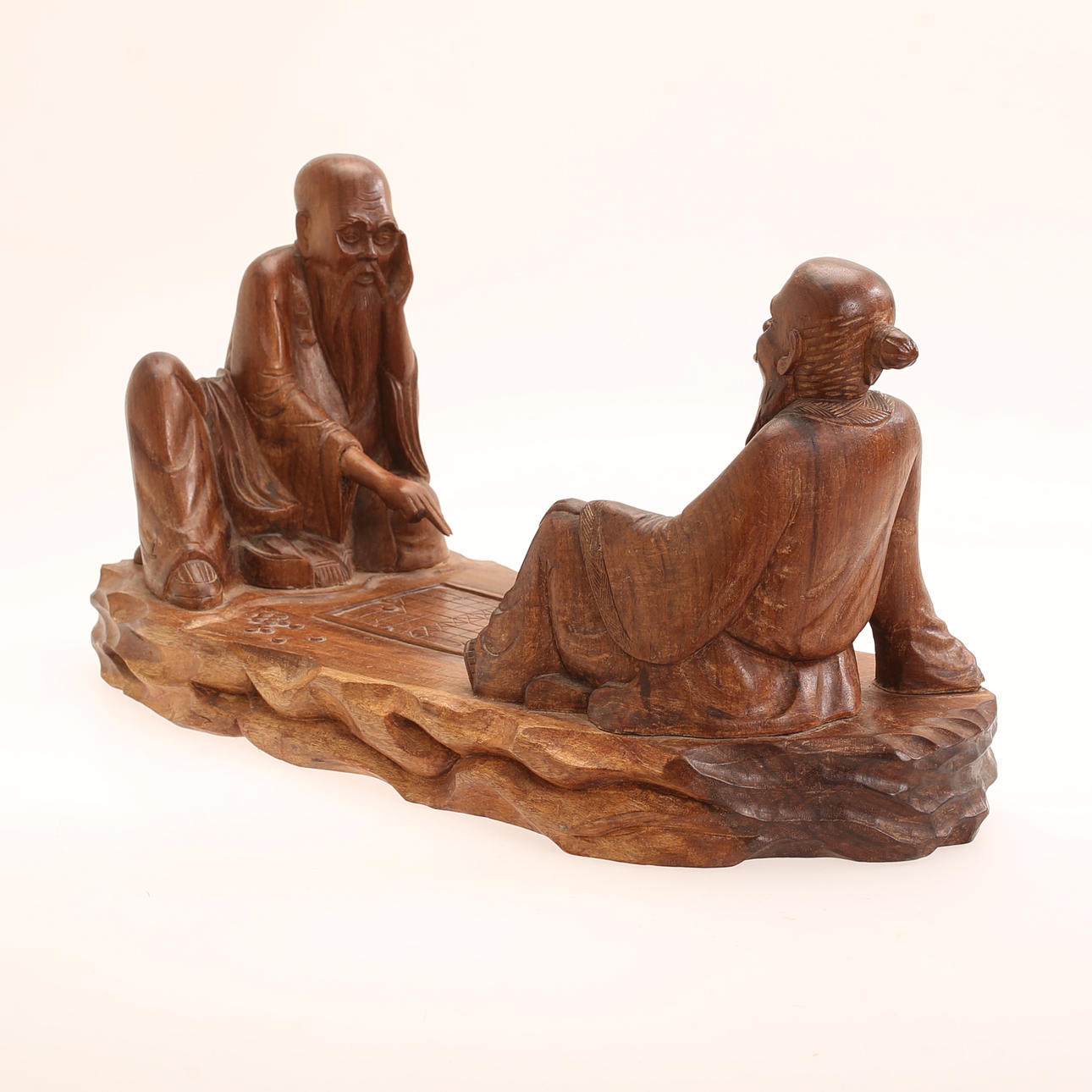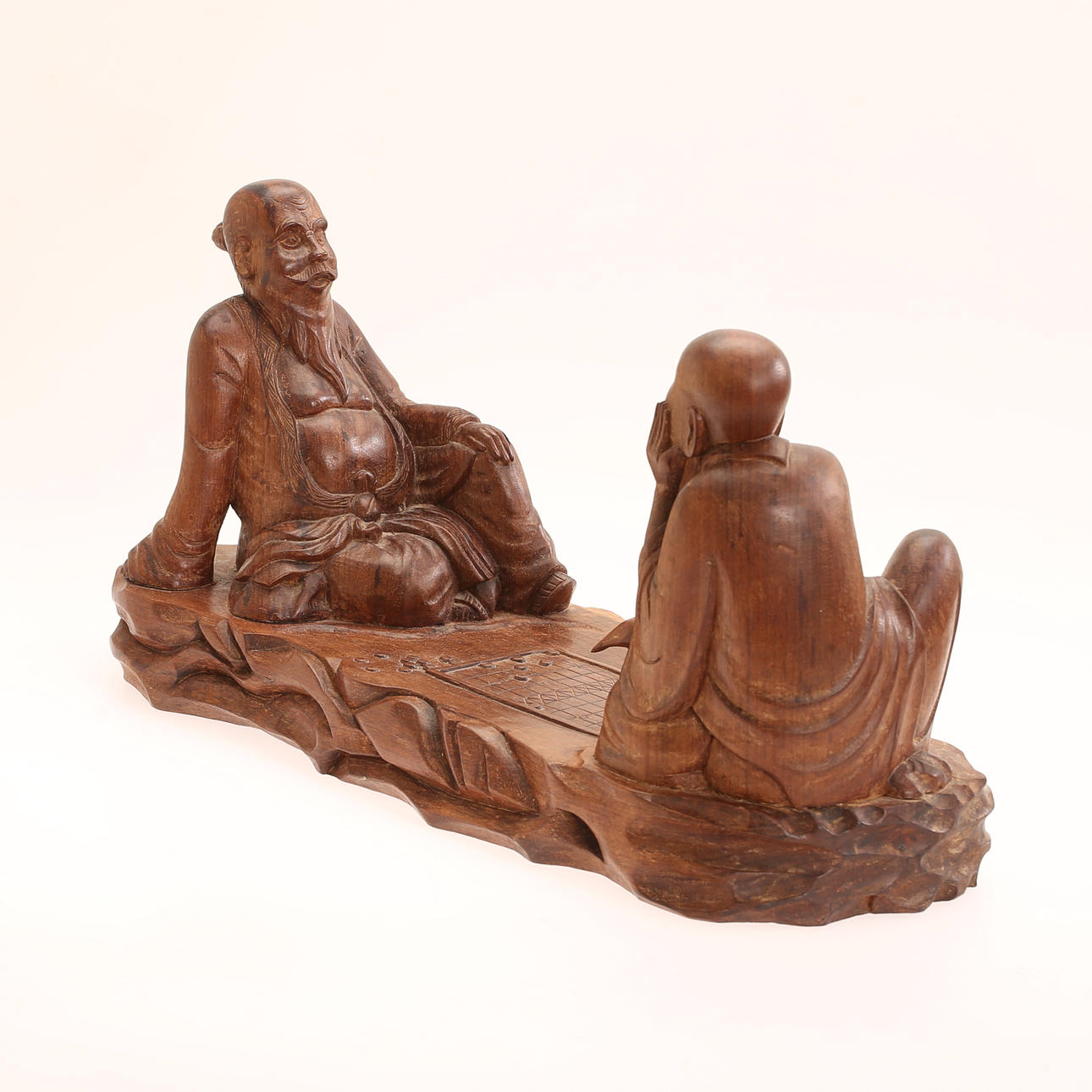 4304921. SCULPTURE, wood, playing men, signed.