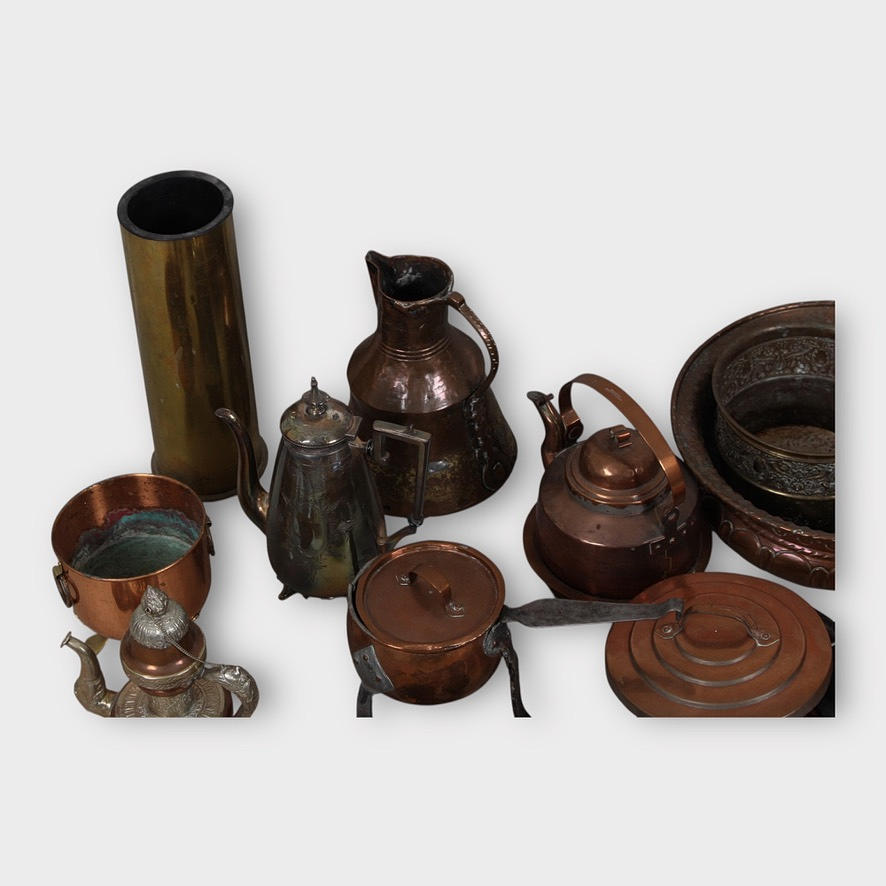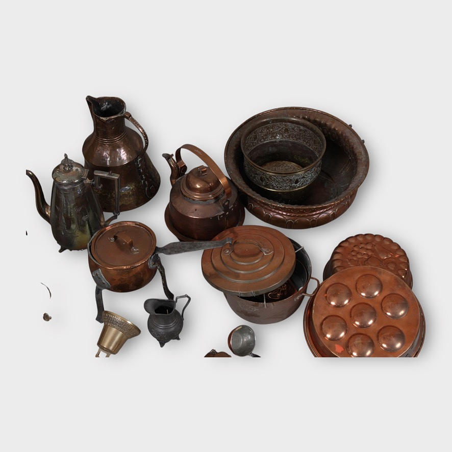4305065. UTENSILS, lot, approx. 25 pieces, brass/copper.