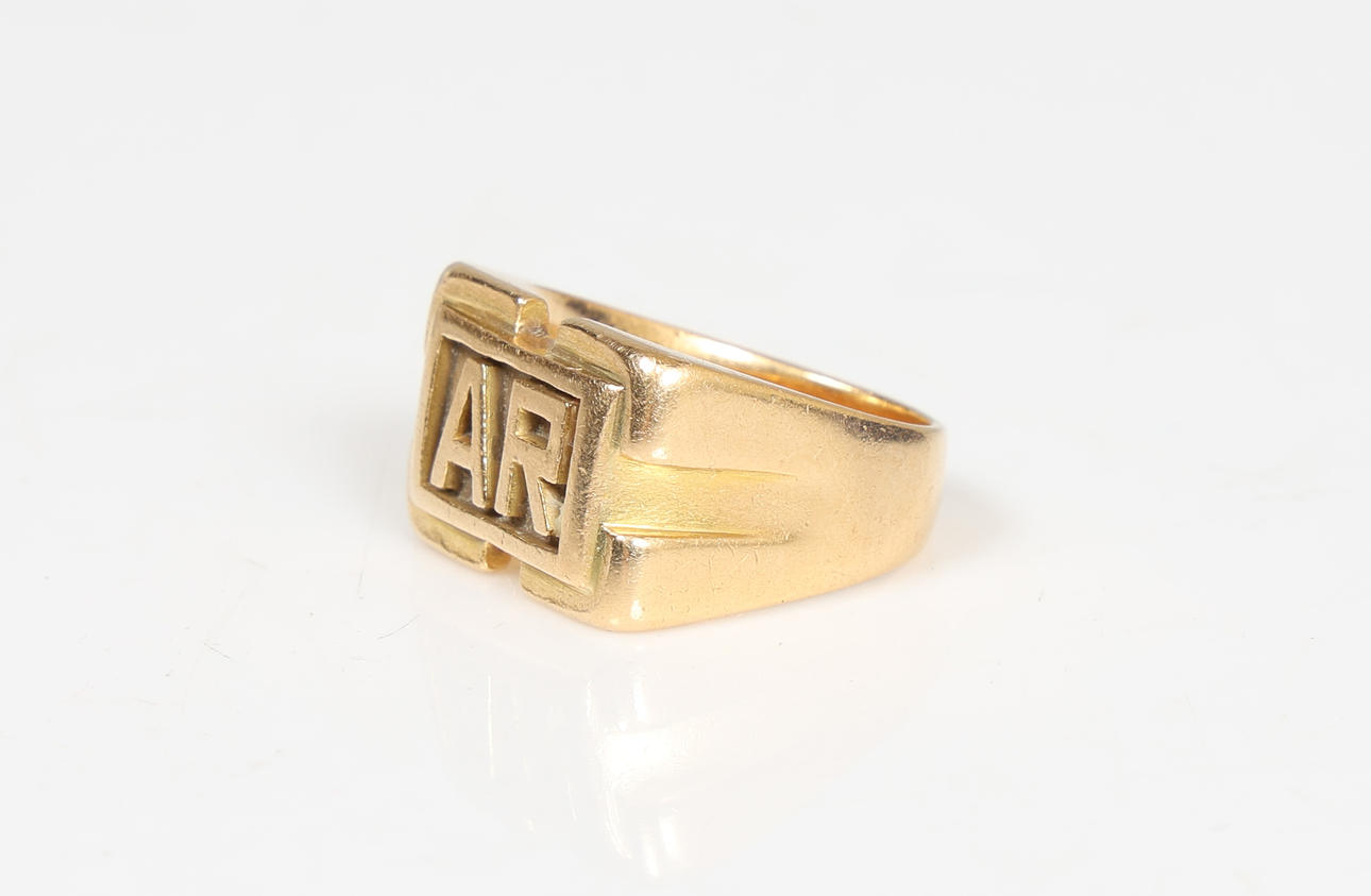 The head with initials AR, ring size K 1/2, 14g.