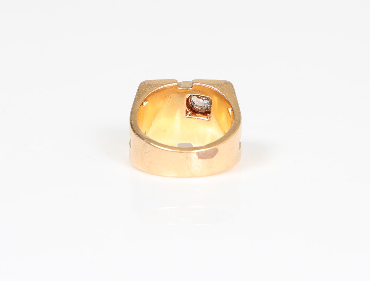 4305682. A YELLOW METAL AND DIAMOND SET SIGNET RING.