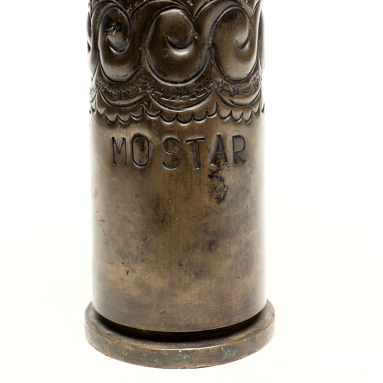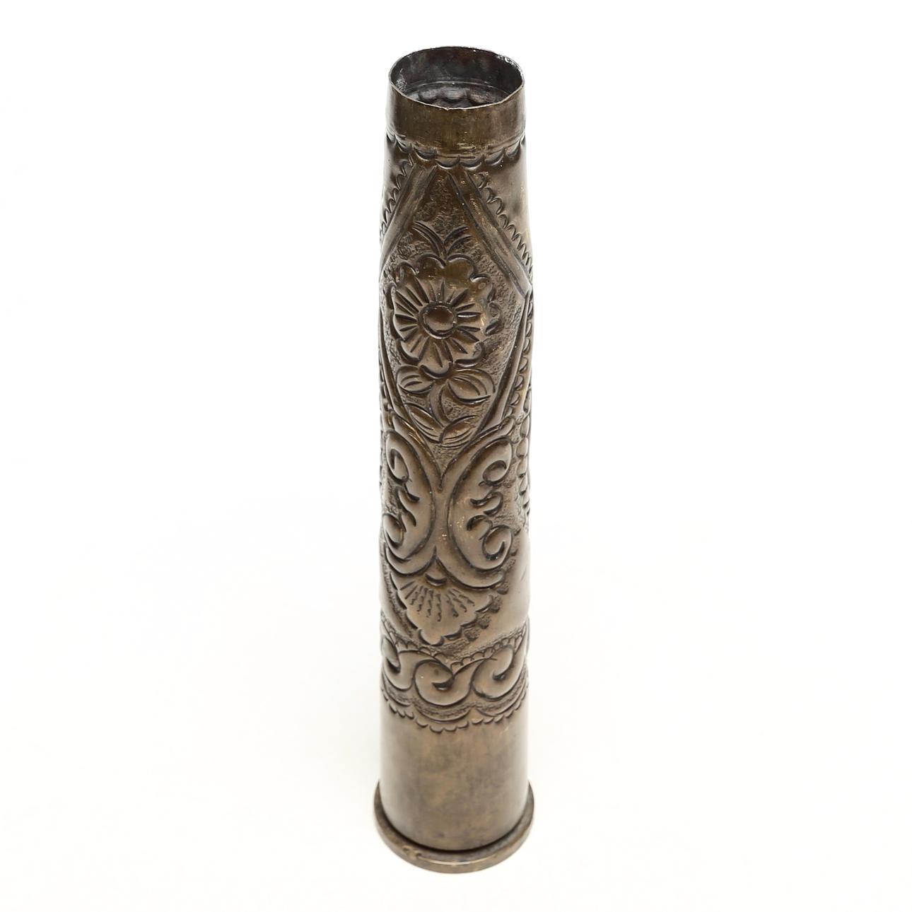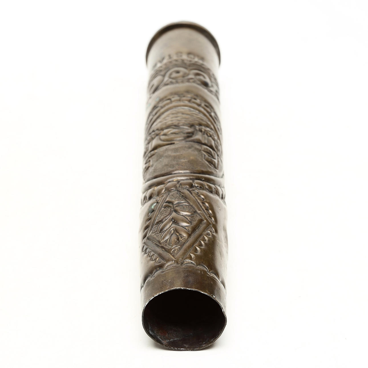 CARTRIDGE SLEEVE, brass, decorated.