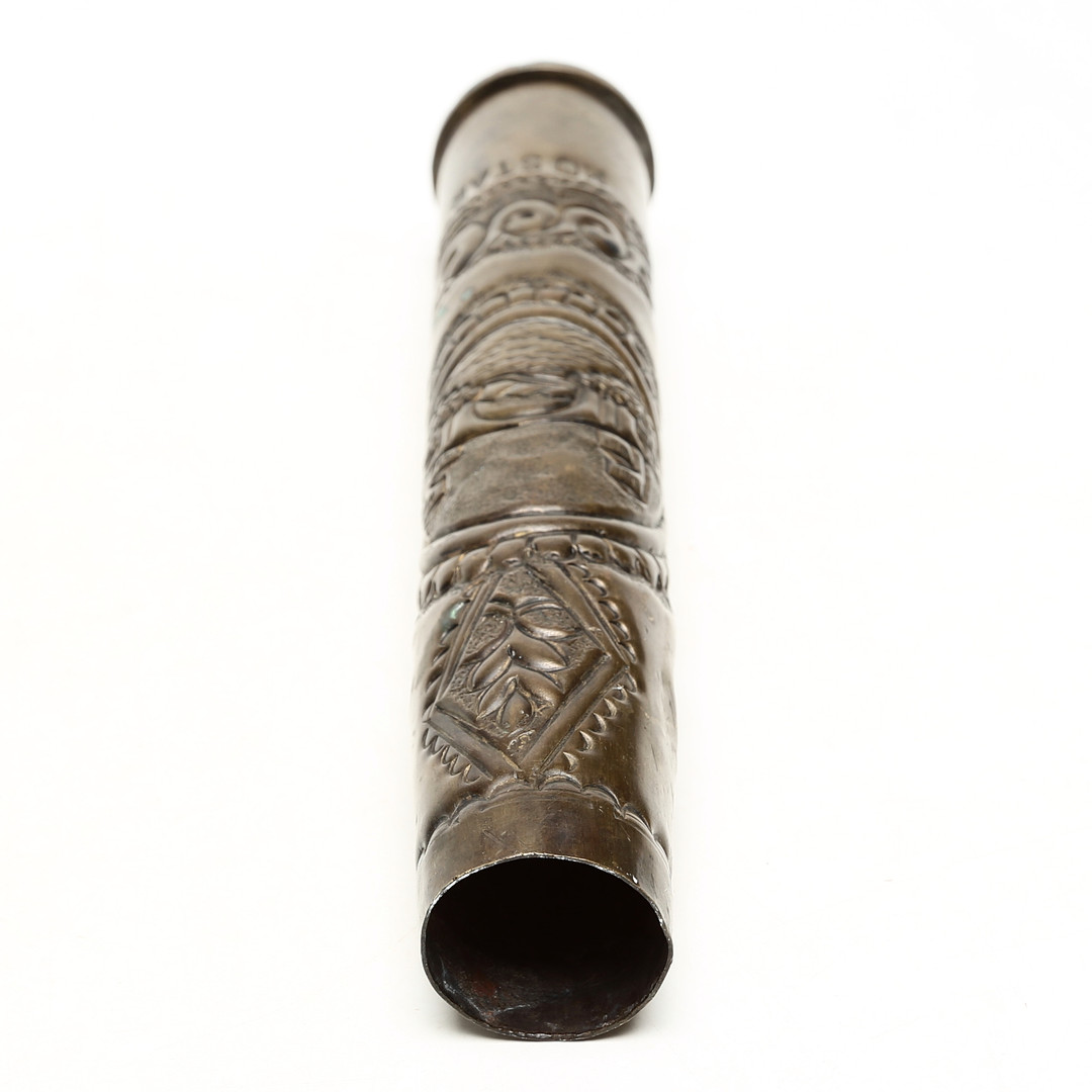 4306285. CARTRIDGE SLEEVE, brass, decorated.