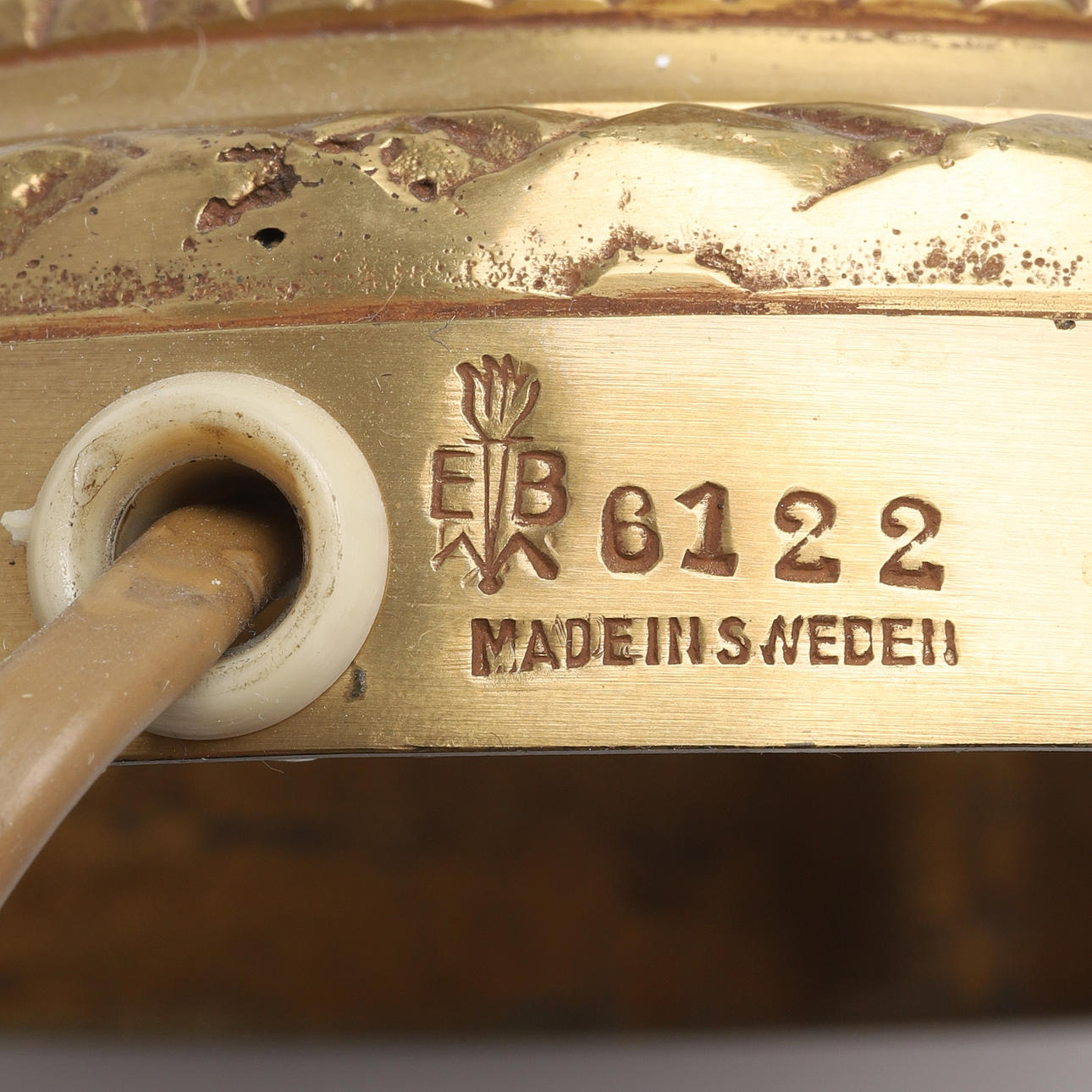 Brass. Noticed. Height excluding screen 40 cm. With textile screen.