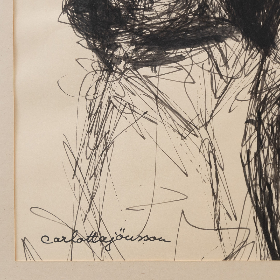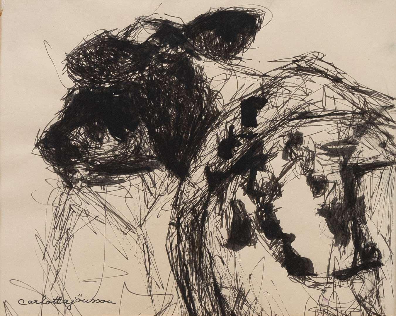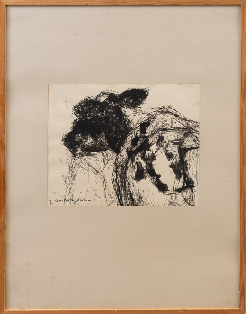 4307050. CARLOTTA JÖNSSON (1909-1979). Cow, ink drawing, signed.