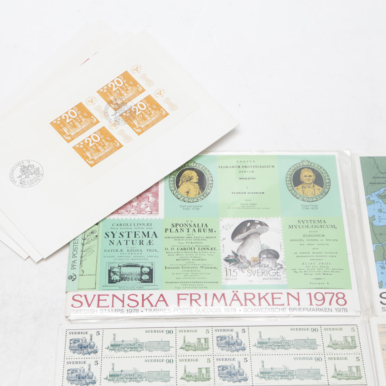 STAMP YEAR SETS, 7 pcs, Sweden, and more.