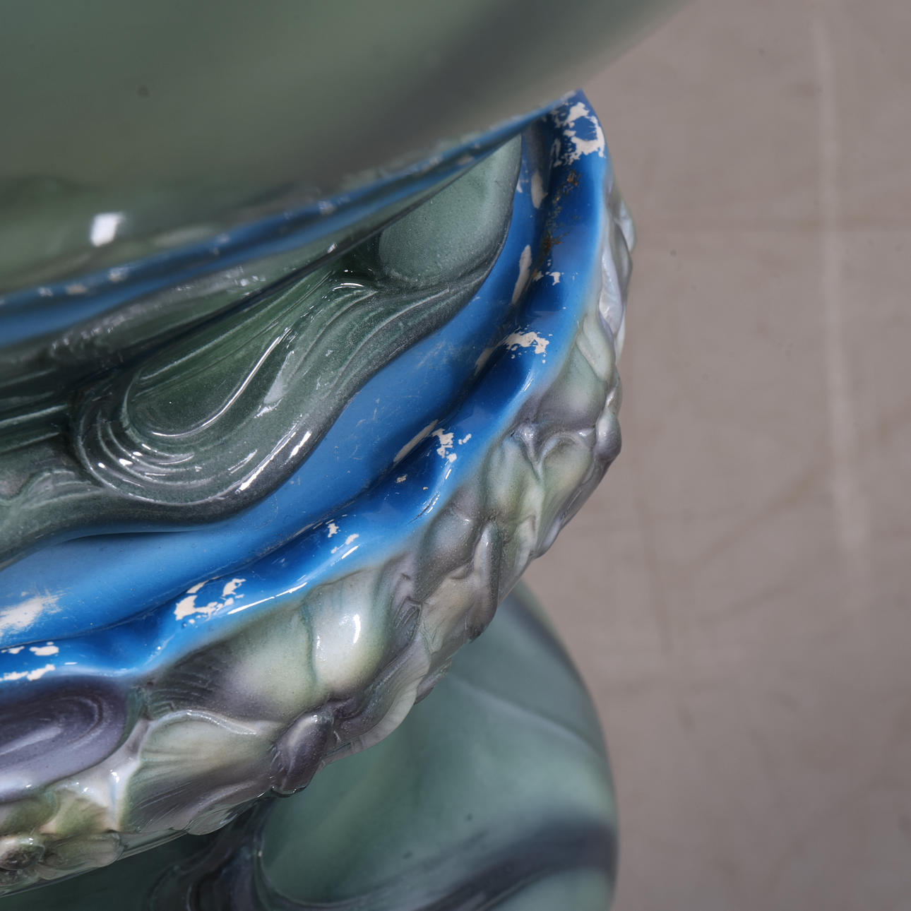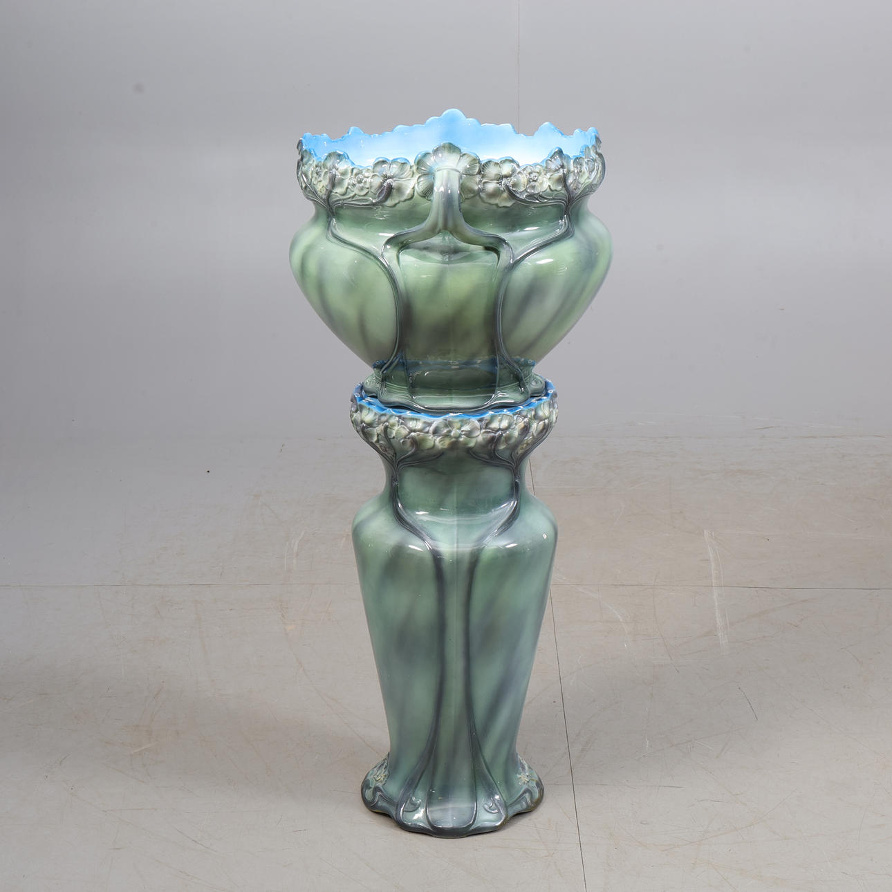 Outer lining. Height approx. 33 cm. Diameter approx. 34 cm. Pedestal. Height approx. 56 cm. Diameter approx. 26 cm.