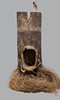 Second third of the 20th century, with a raised vertical ridge, four outstretched hands projecting from the surface, and polychrome painted chevron decoration in red, white, and blue. Fiber fringe around the base, pierced border for attachment, and feather plume at top, 88cm high 32cm wide