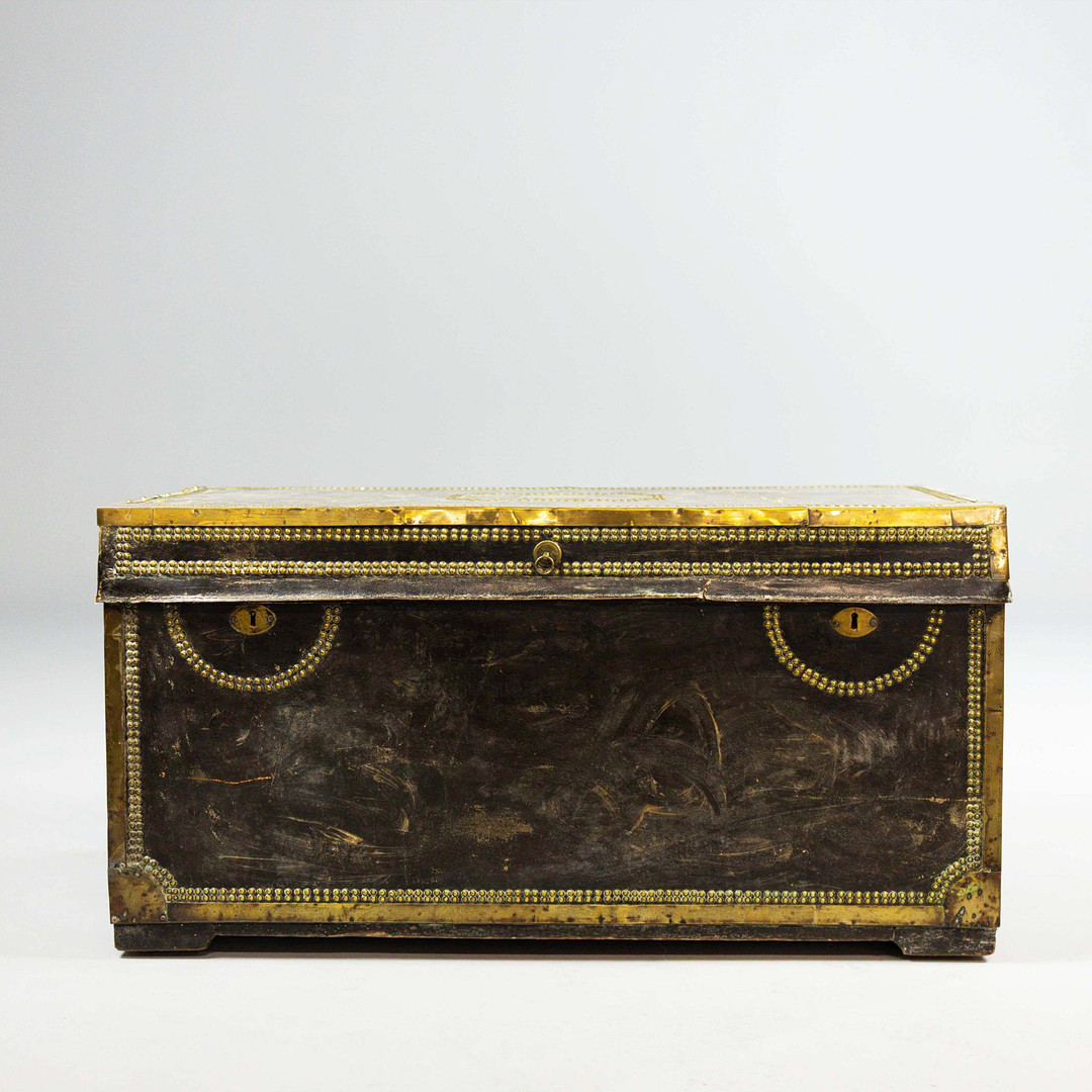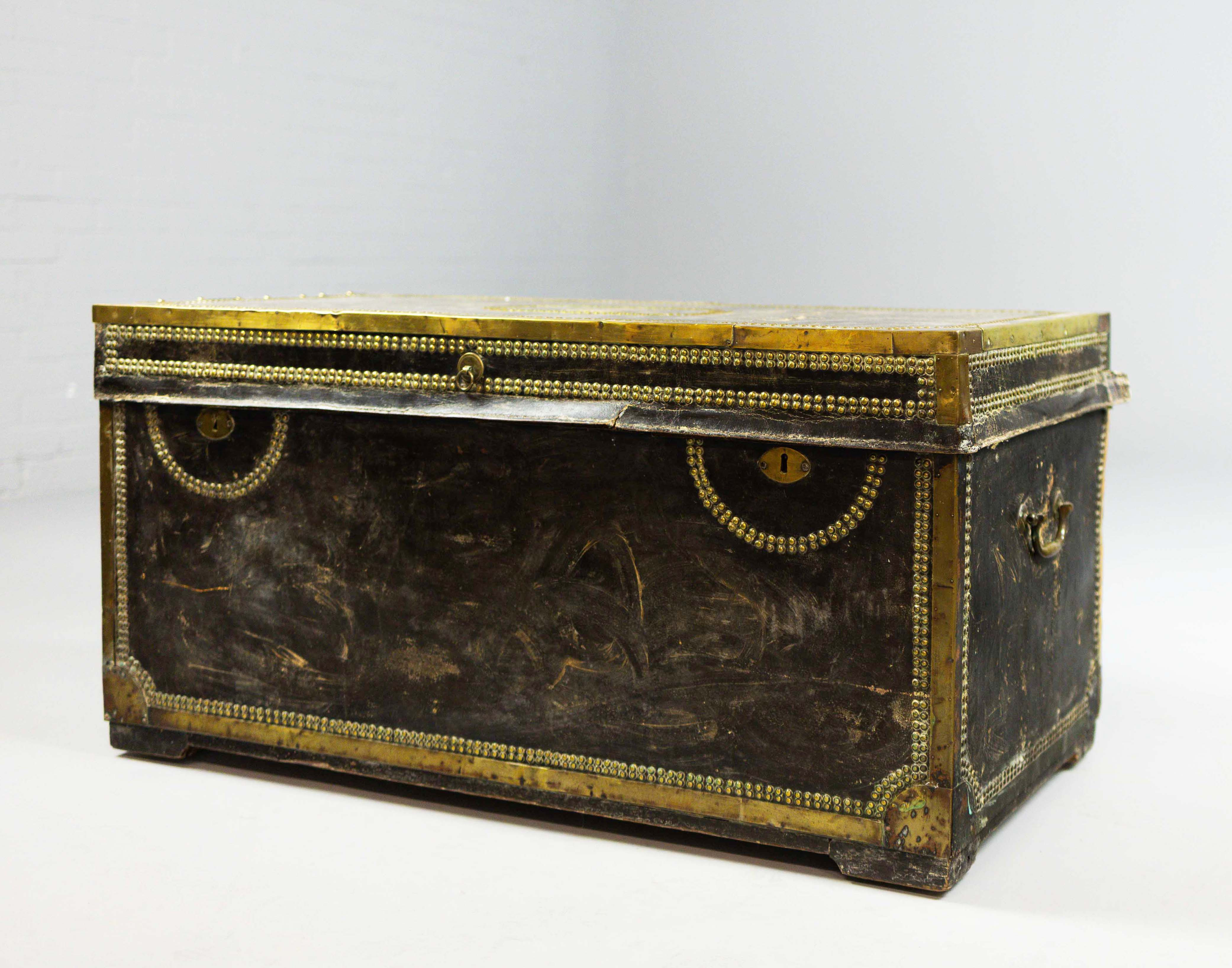 4308092. REGENCY LEATHER AND BRASS TRUNK.
