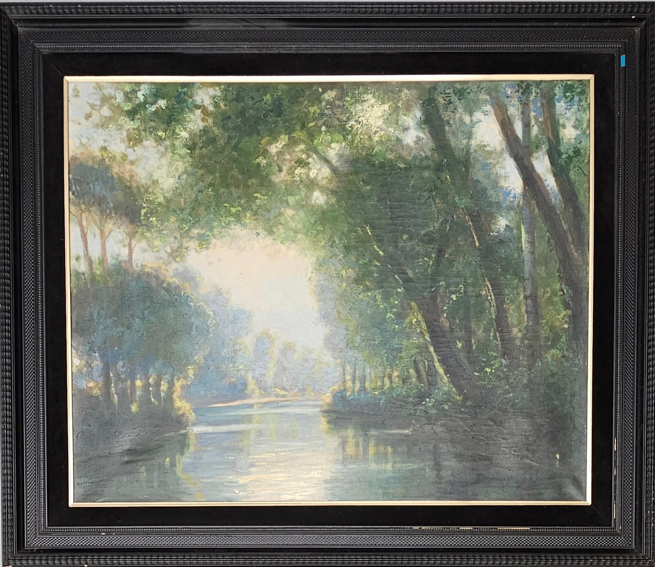 DOMINGO SOLER. RIVER LANDSCAPE, OIL ON CANVAS.