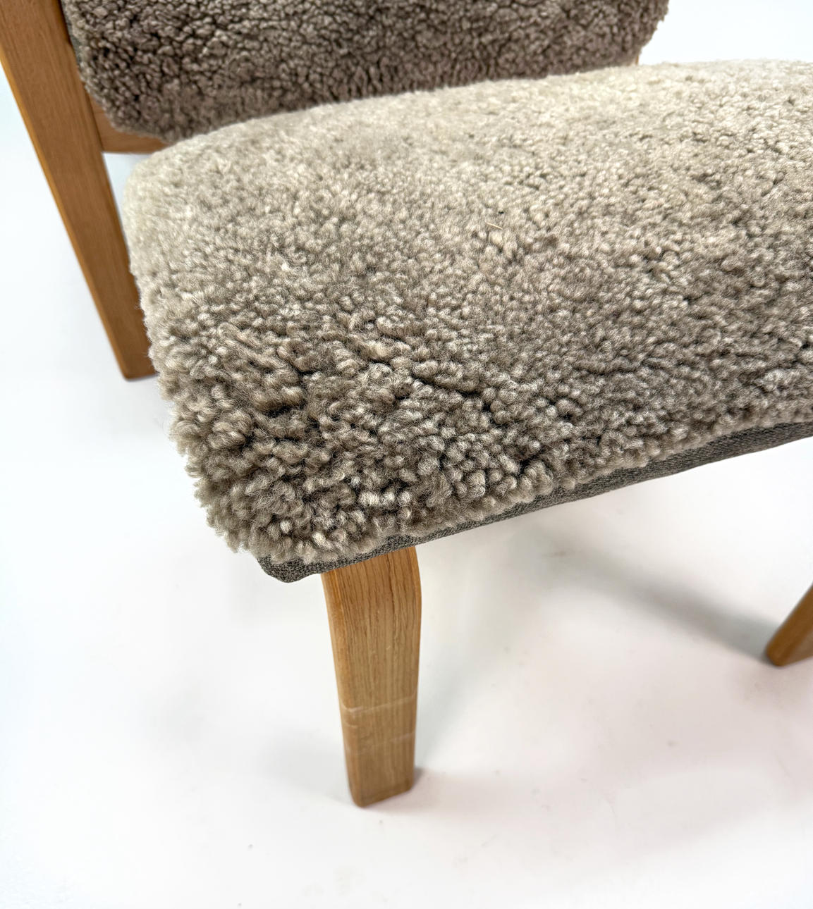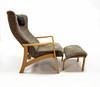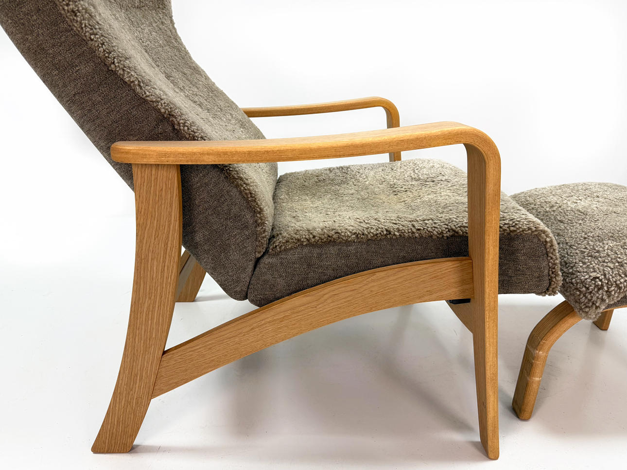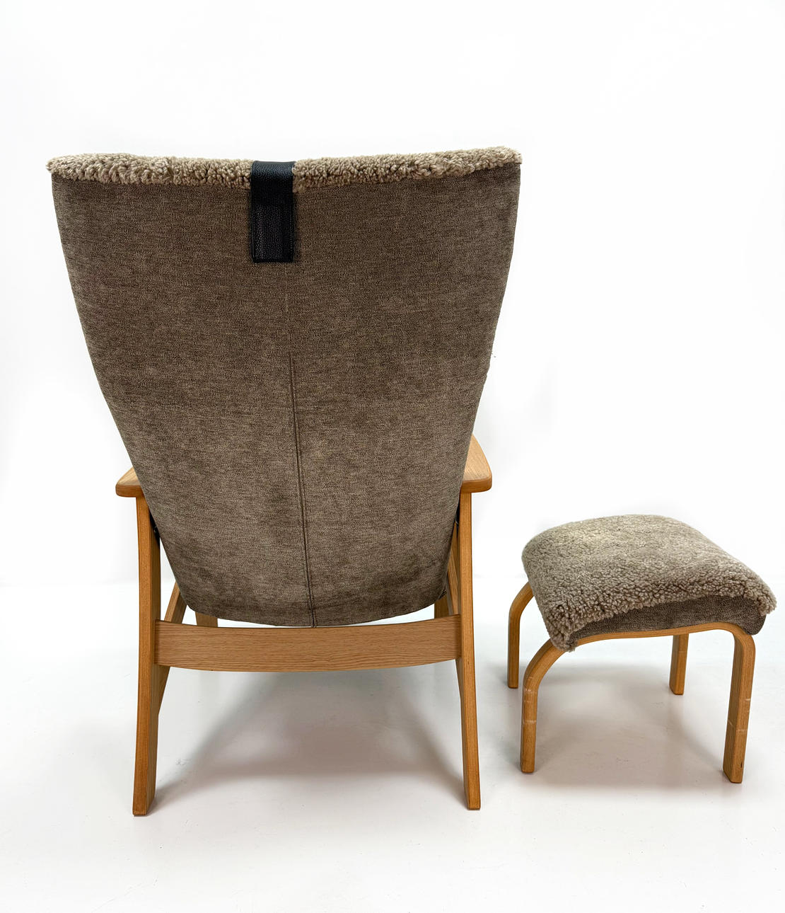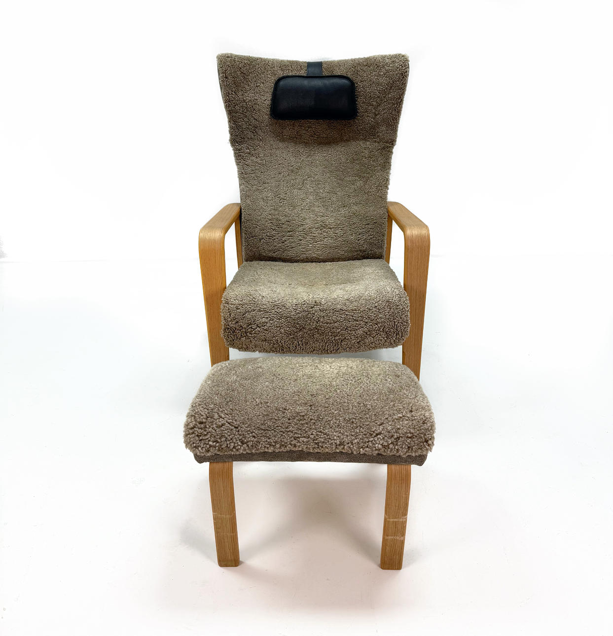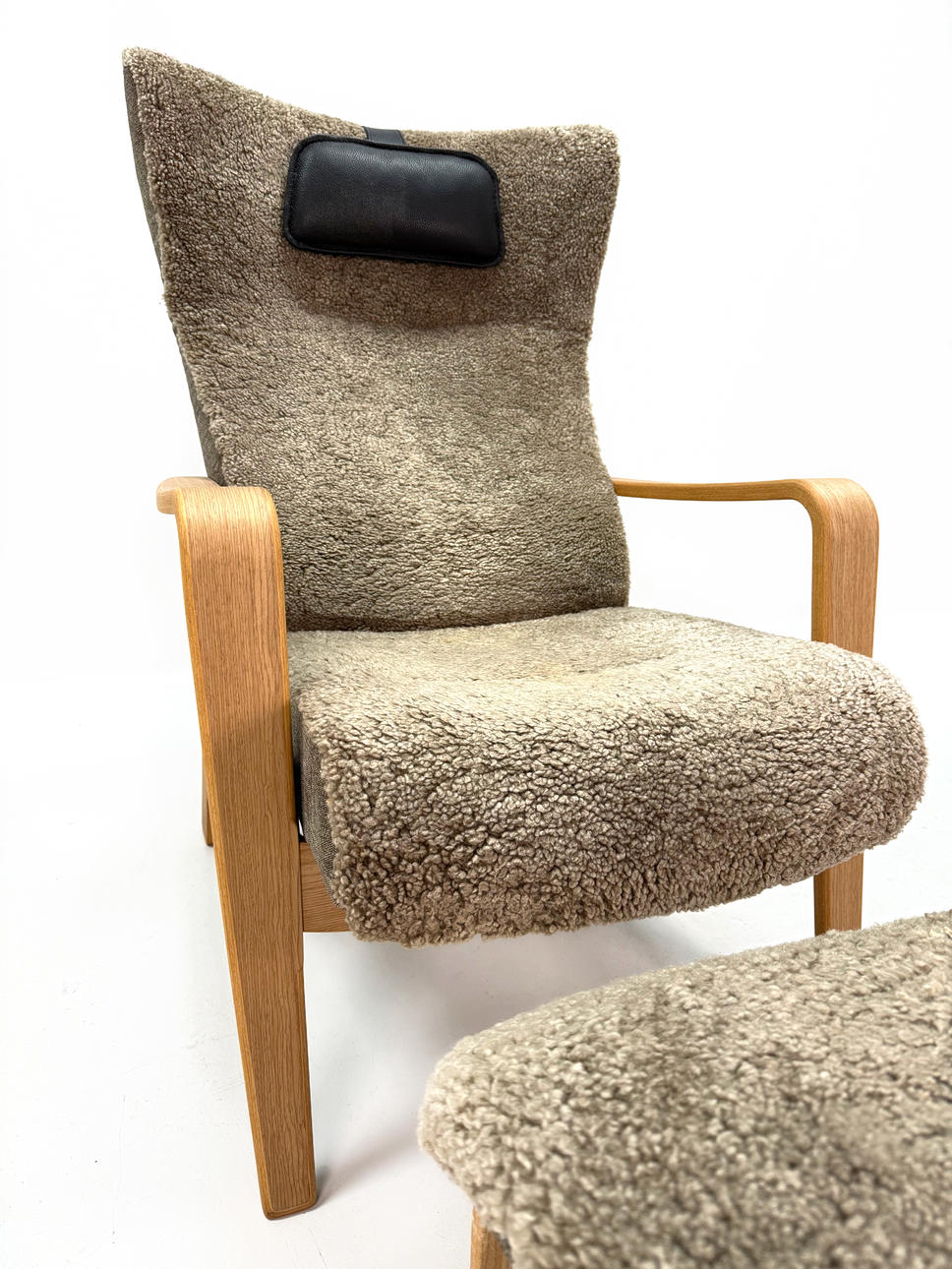 Armchair with footstool, sheepskin, leather.