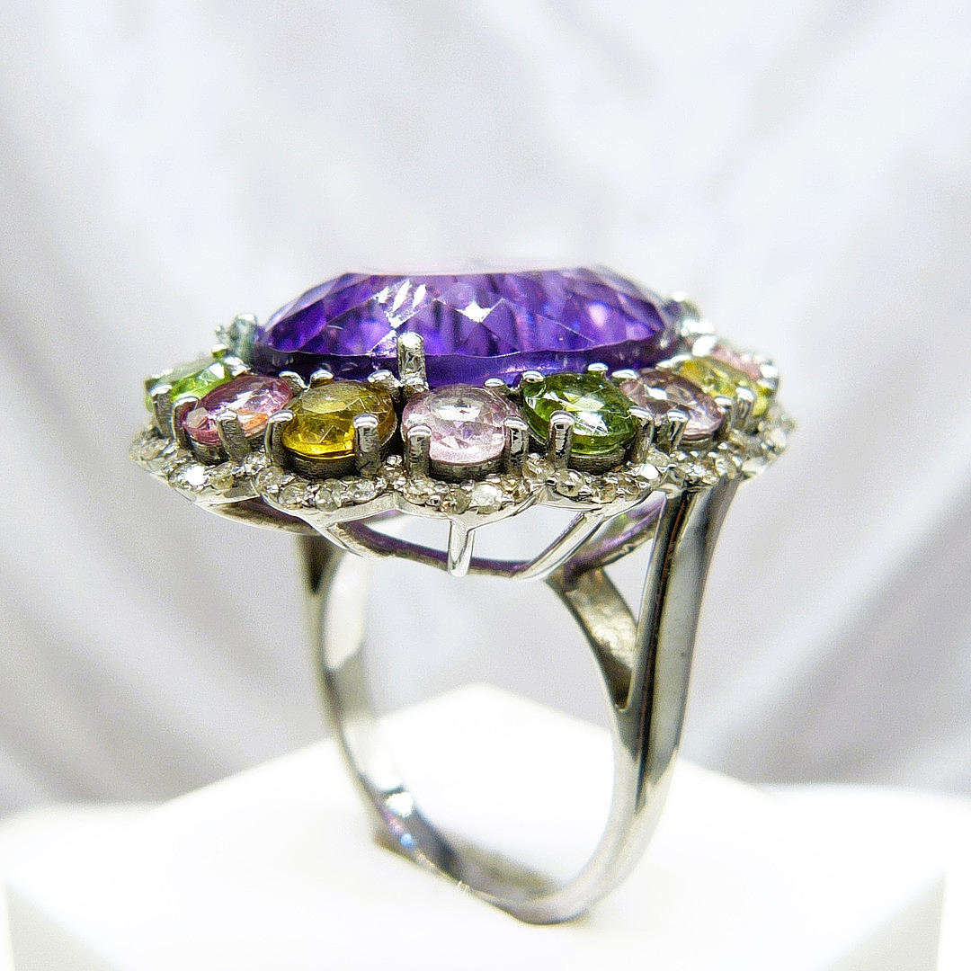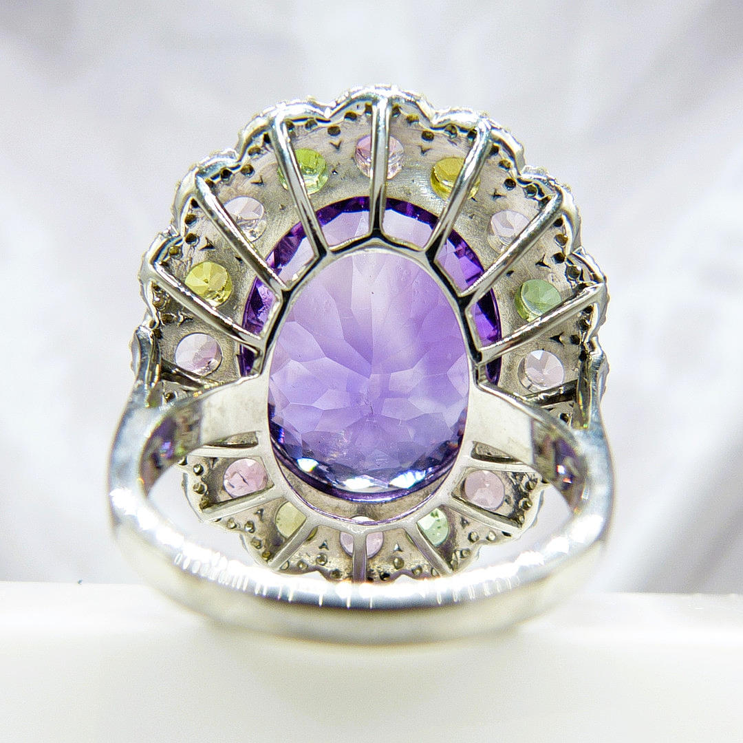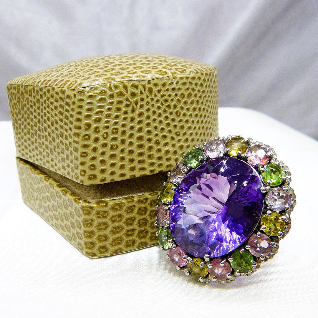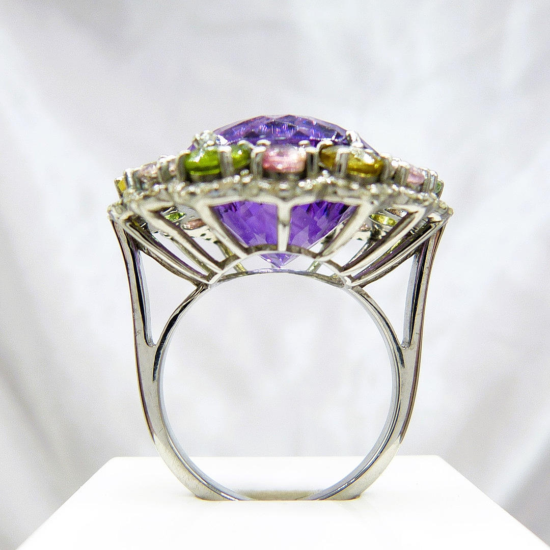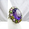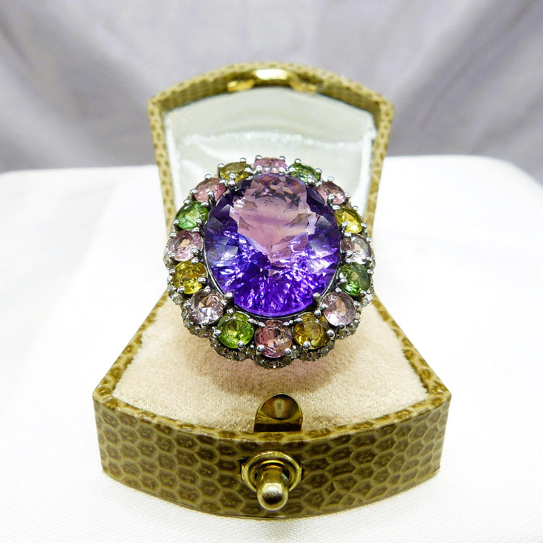 This Impressive Ring Is Set With A Large Oval Amethyst Surrounded By Multicolour Tourmaline's And Diamonds.