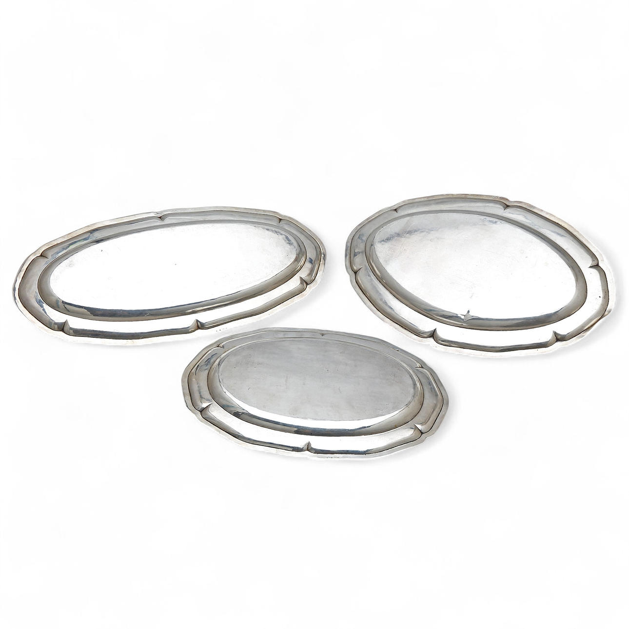 4311084. Three silver trays, mid 20th Century.