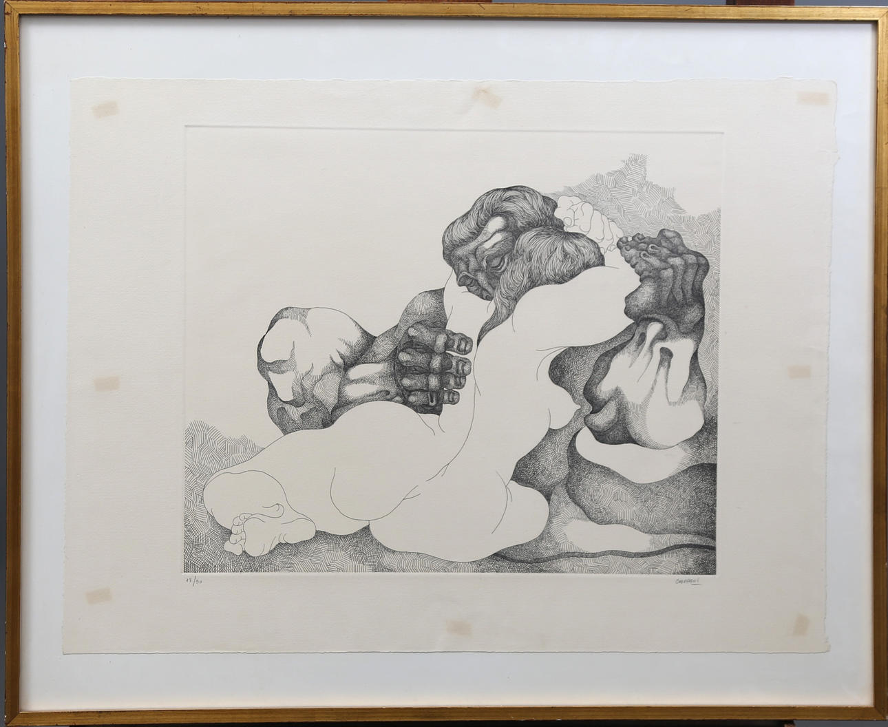Gilt wood frame with protective screen, with flaws and scuffs on the gilding. Not examined without frame.