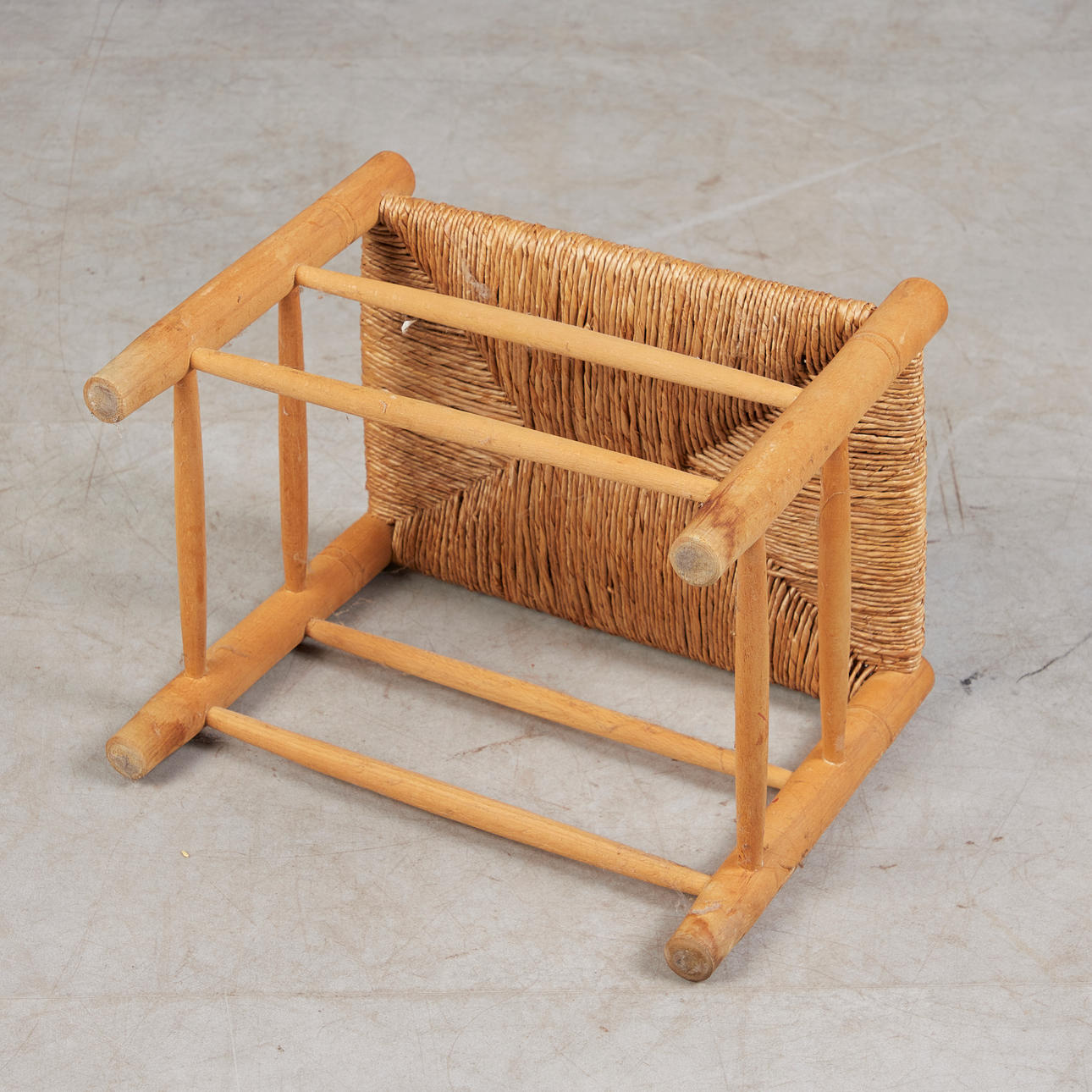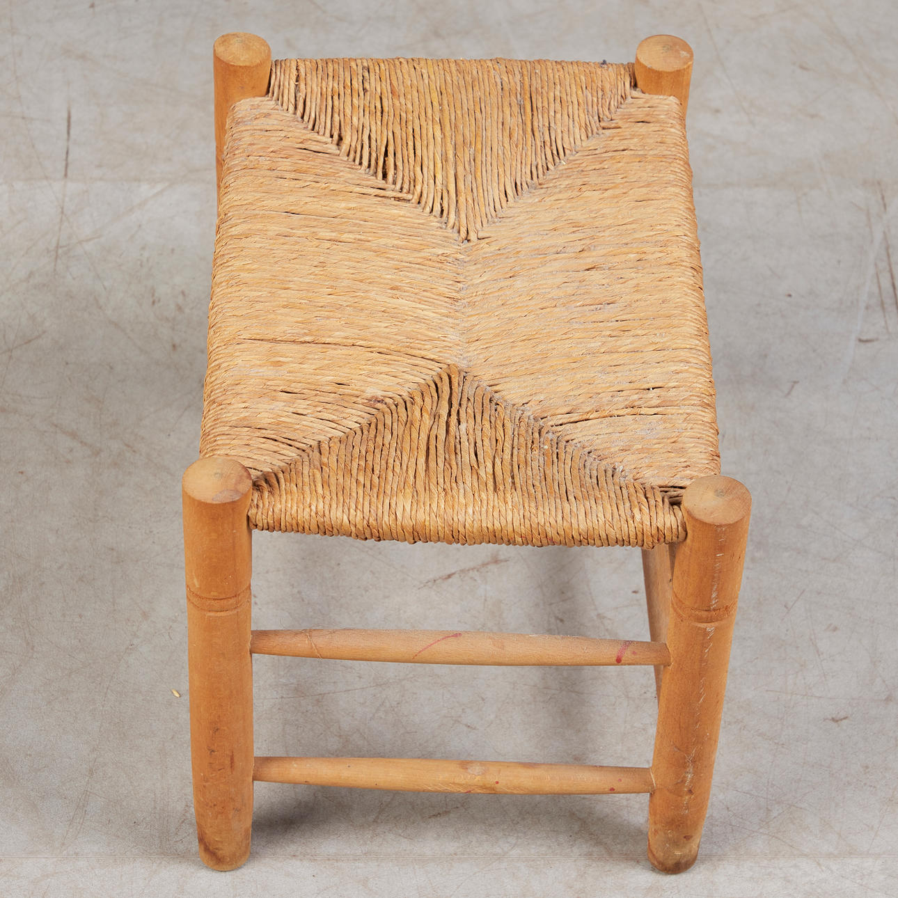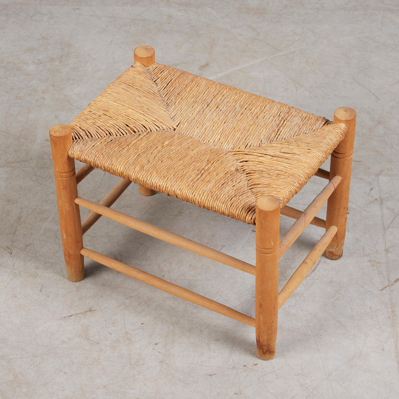 Squat with a beech wood construction on four feet and a rusy mesh seat, H.32cm, L.40cm, W.29cm.