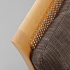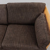 Frame book. Back tray and sides partly in rattan. Plush coats dressed in fabric in brown tones. Seat height 43, width 210, depth 76, height 69 cm.