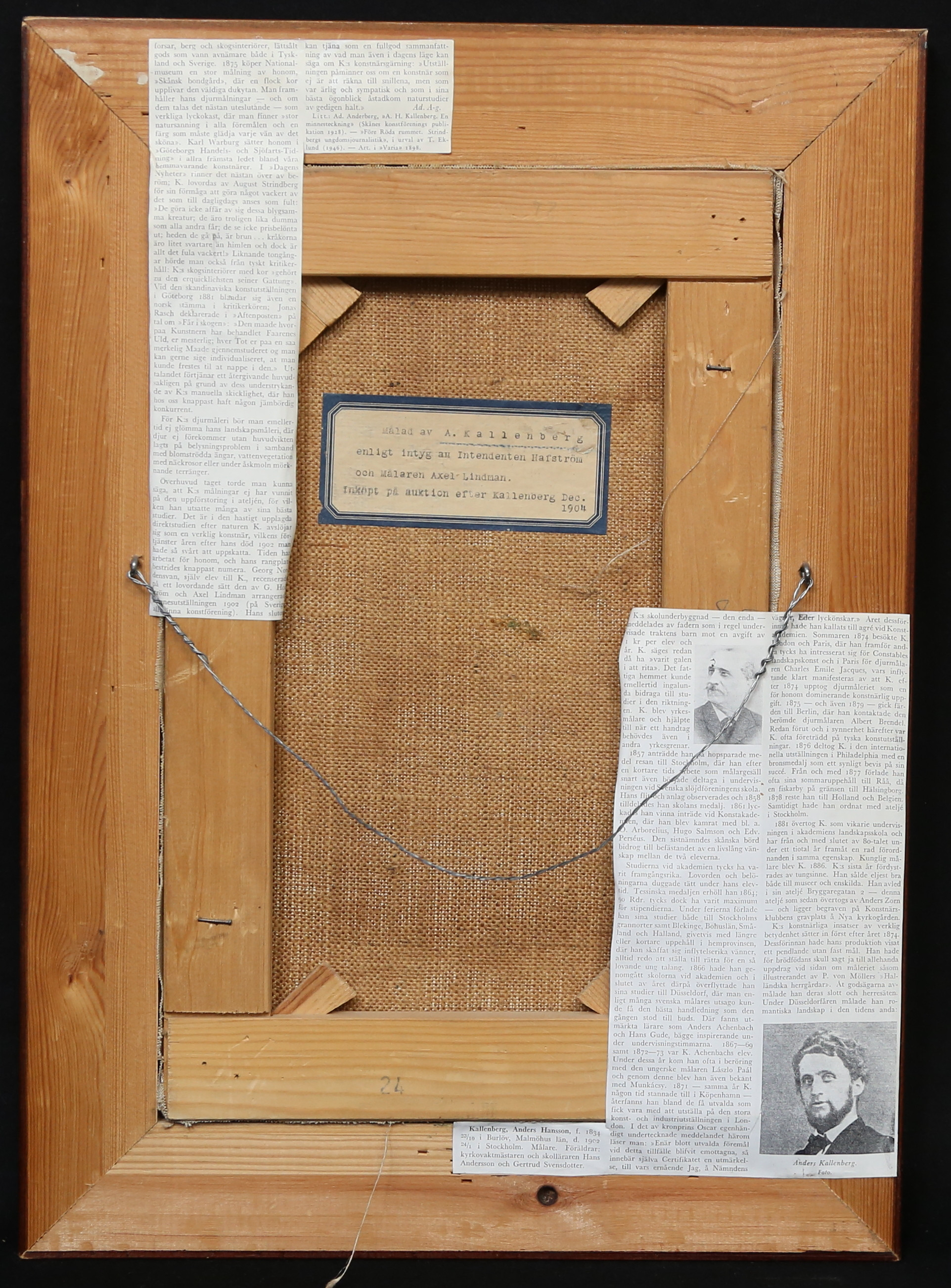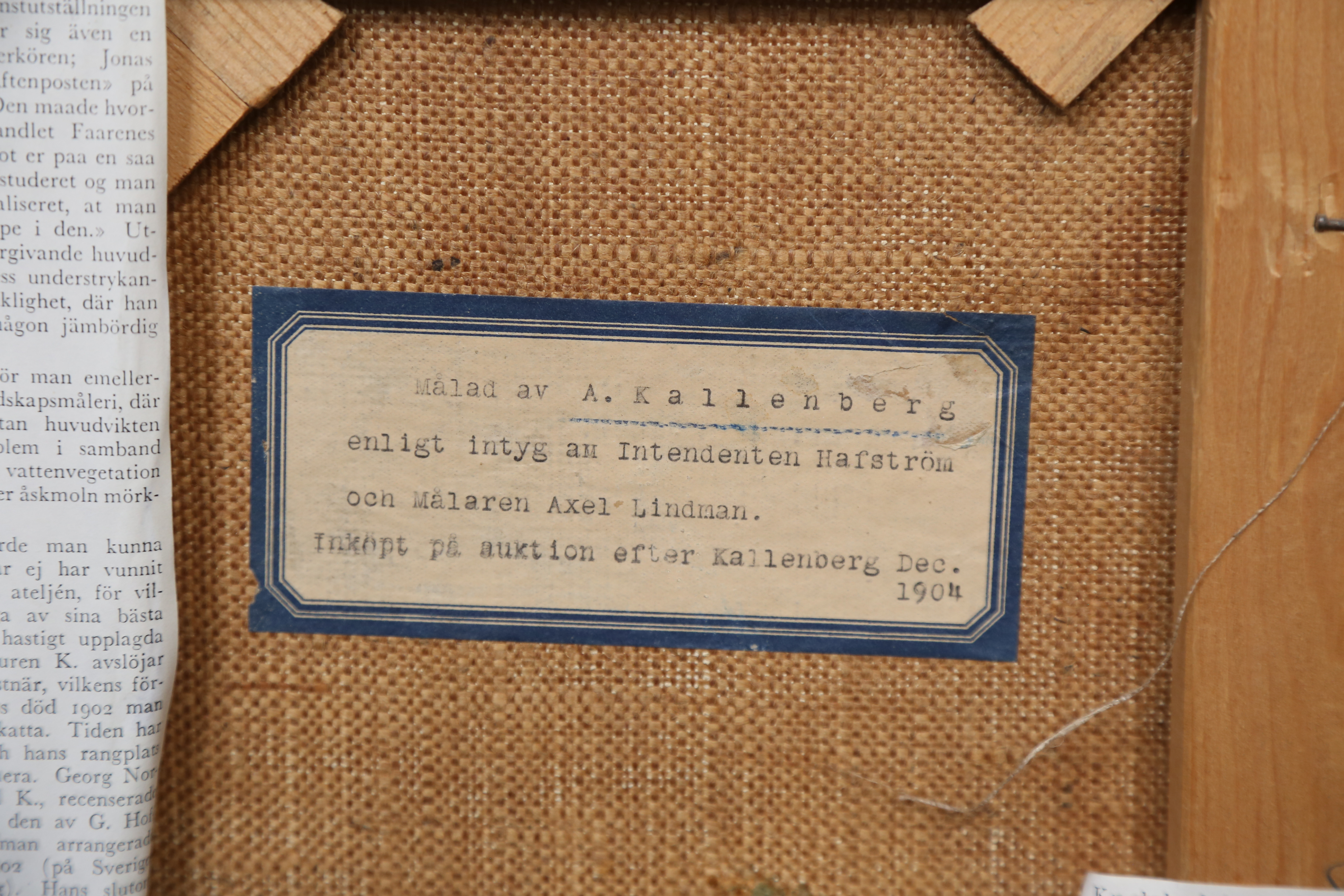 4312426. ATTRIBUTED TO ANDERS KALLENBERG. oil on canvas, unsigned.