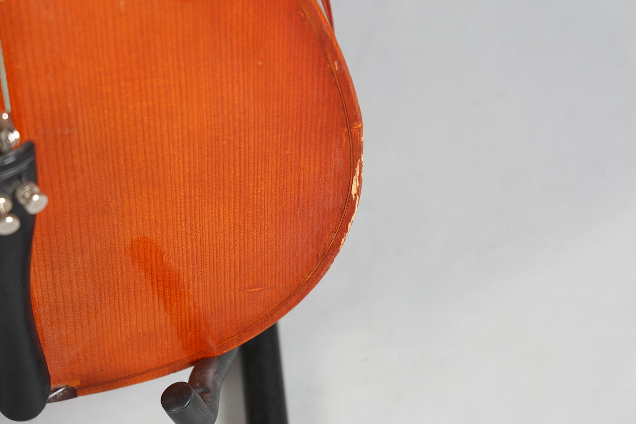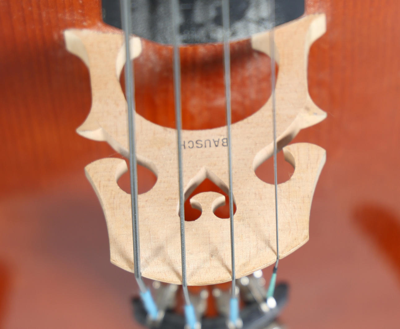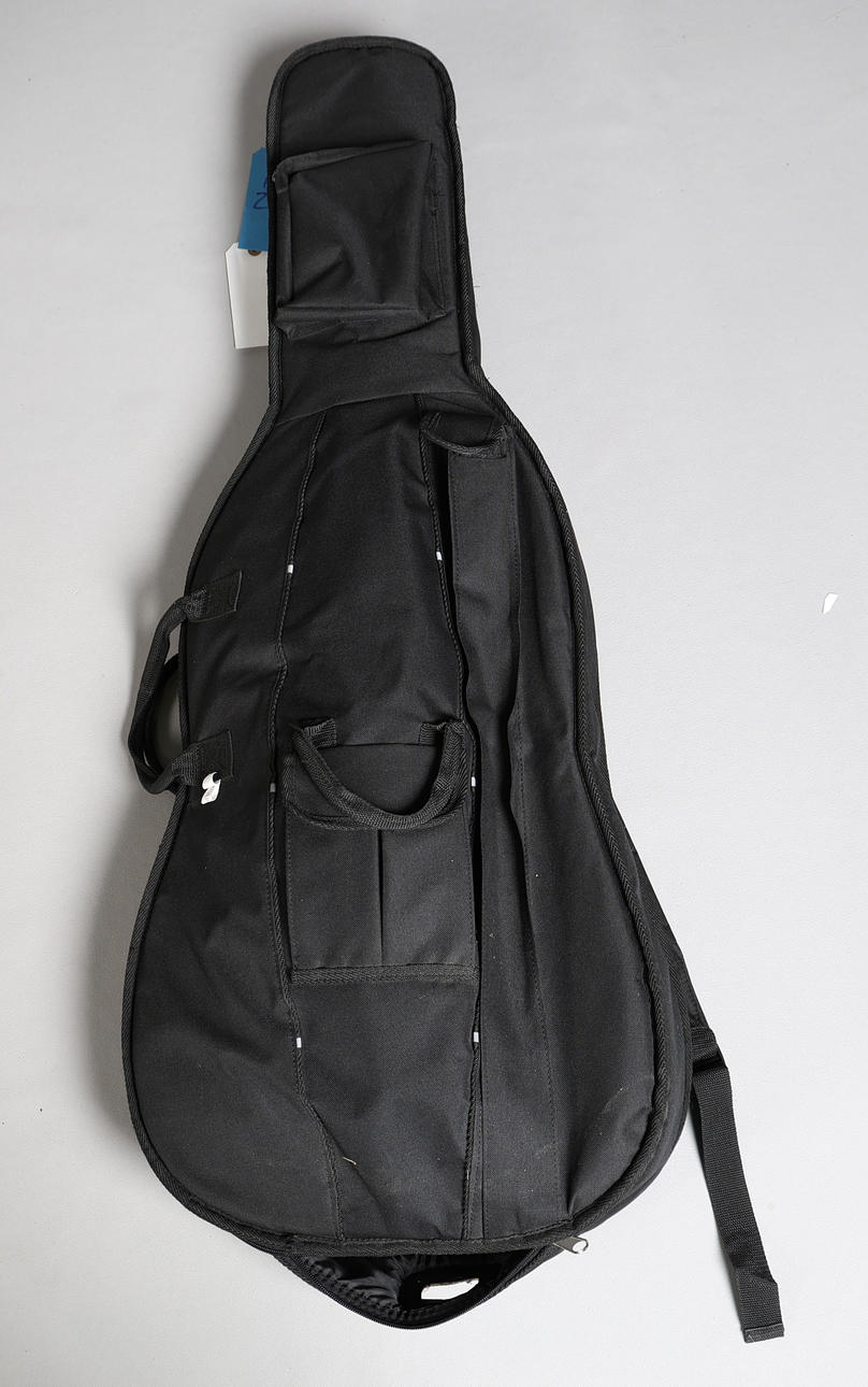 Solid overall condition, marks and wear commensurate with age, some dings and heaver scuffs to body edges, stickers to neck, a good student cello.