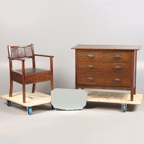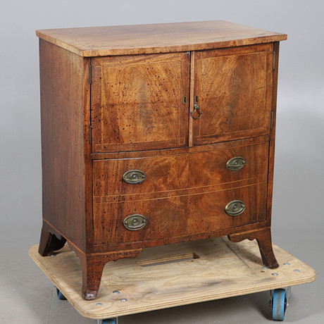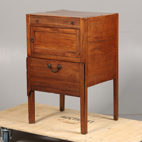 commode with chips and losses, doors loose, scuffs and chips to stick stand, scuffs to the trunk.