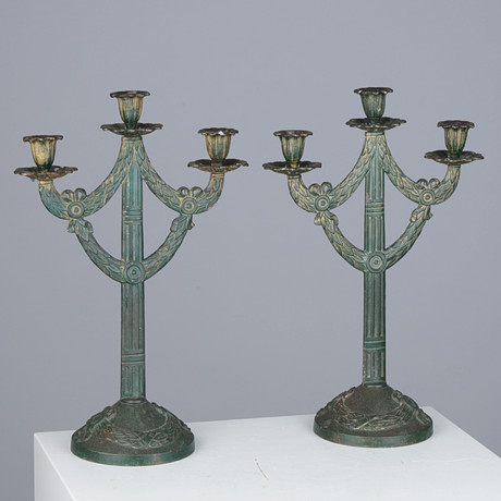 Pair three - armed candelabra of bronze, with four light cuffs. The first half of the 20th century. (2nd).